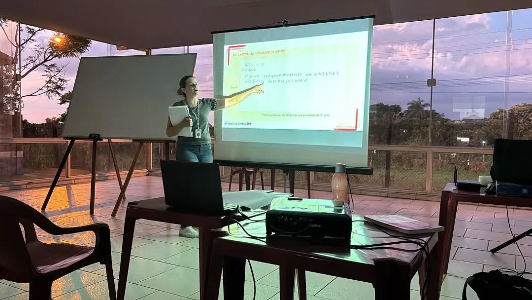 No dia 14 de abril, foi realizada uma formação com as professoras dos 3º aos 5º anos do Ensino Fundamental da Rede Municipal de Educação, como parte do Programa Alfabetiza Juntos, em parceria com o SESI. A formação teve como foco os componentes curriculares de Língua Portuguesa e Matemática, abordando como tema gerador a “Análise e coleta de dados sobre as avaliações de leitura e escrita e o papel da avaliação na aprendizagem de Matemática”.