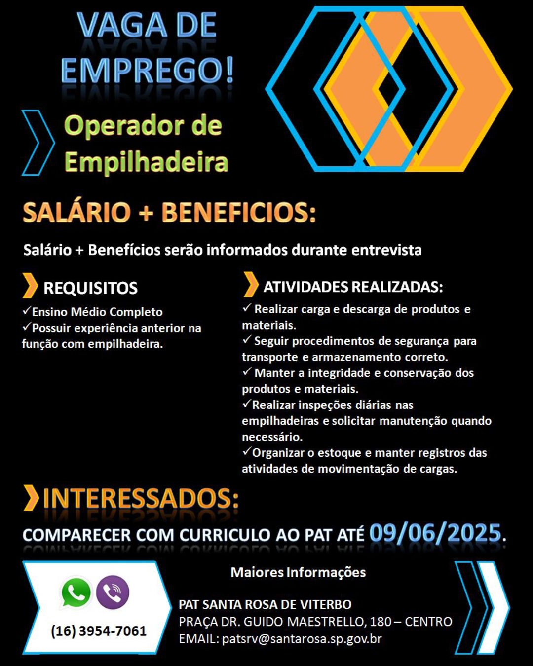 Vaga de emprego em aberto no PAT