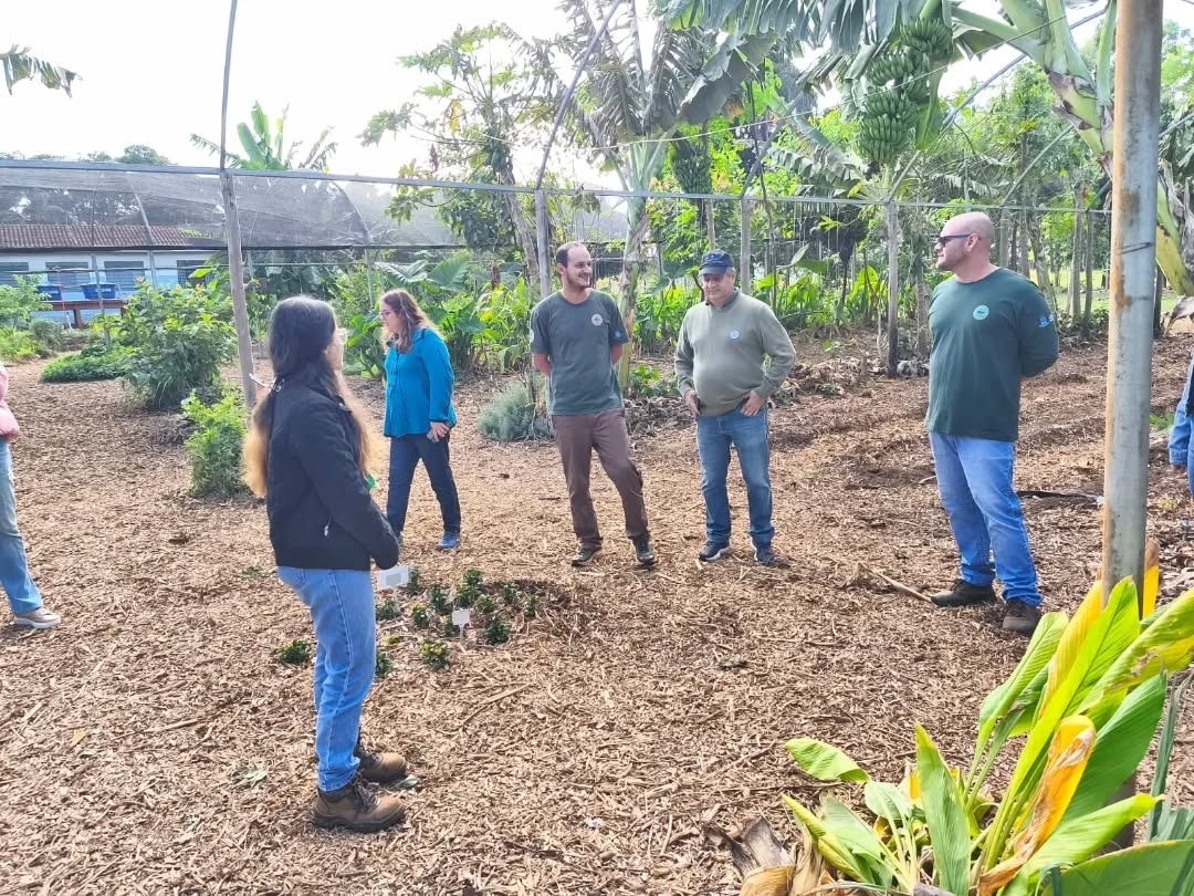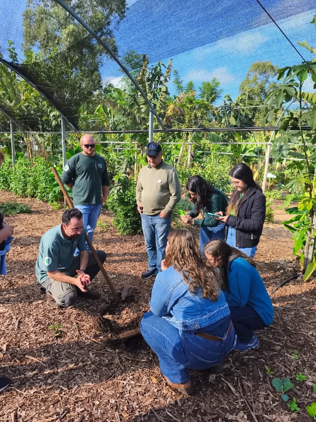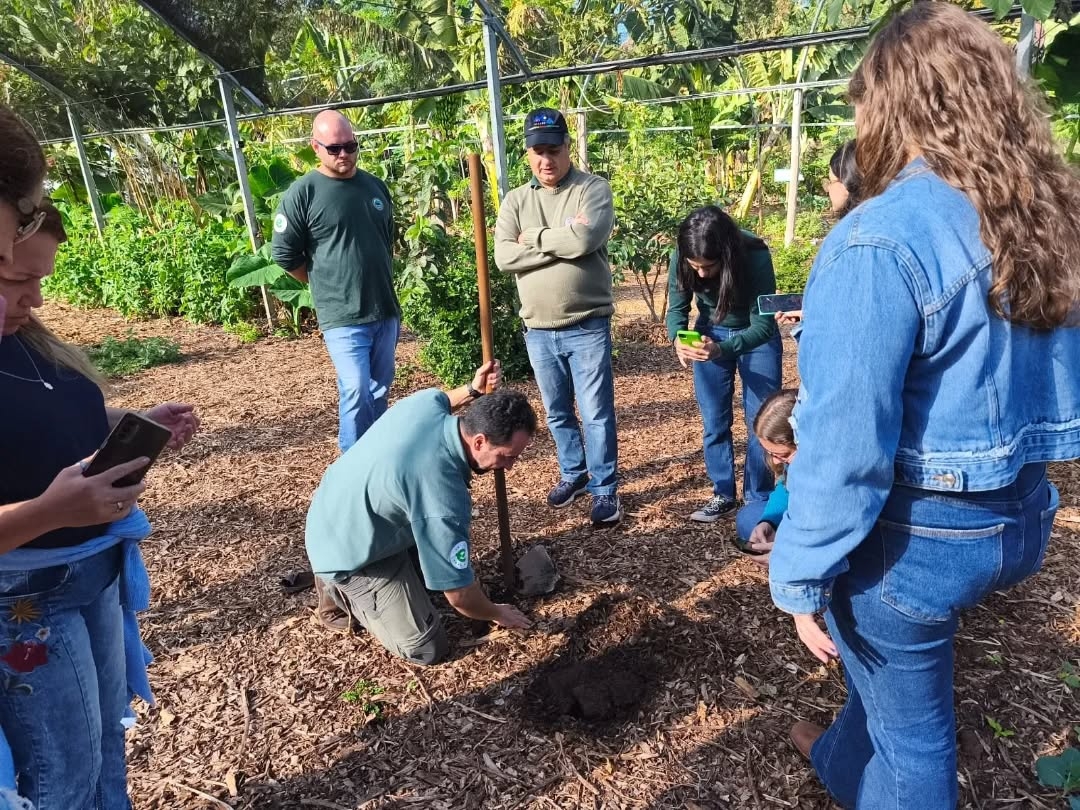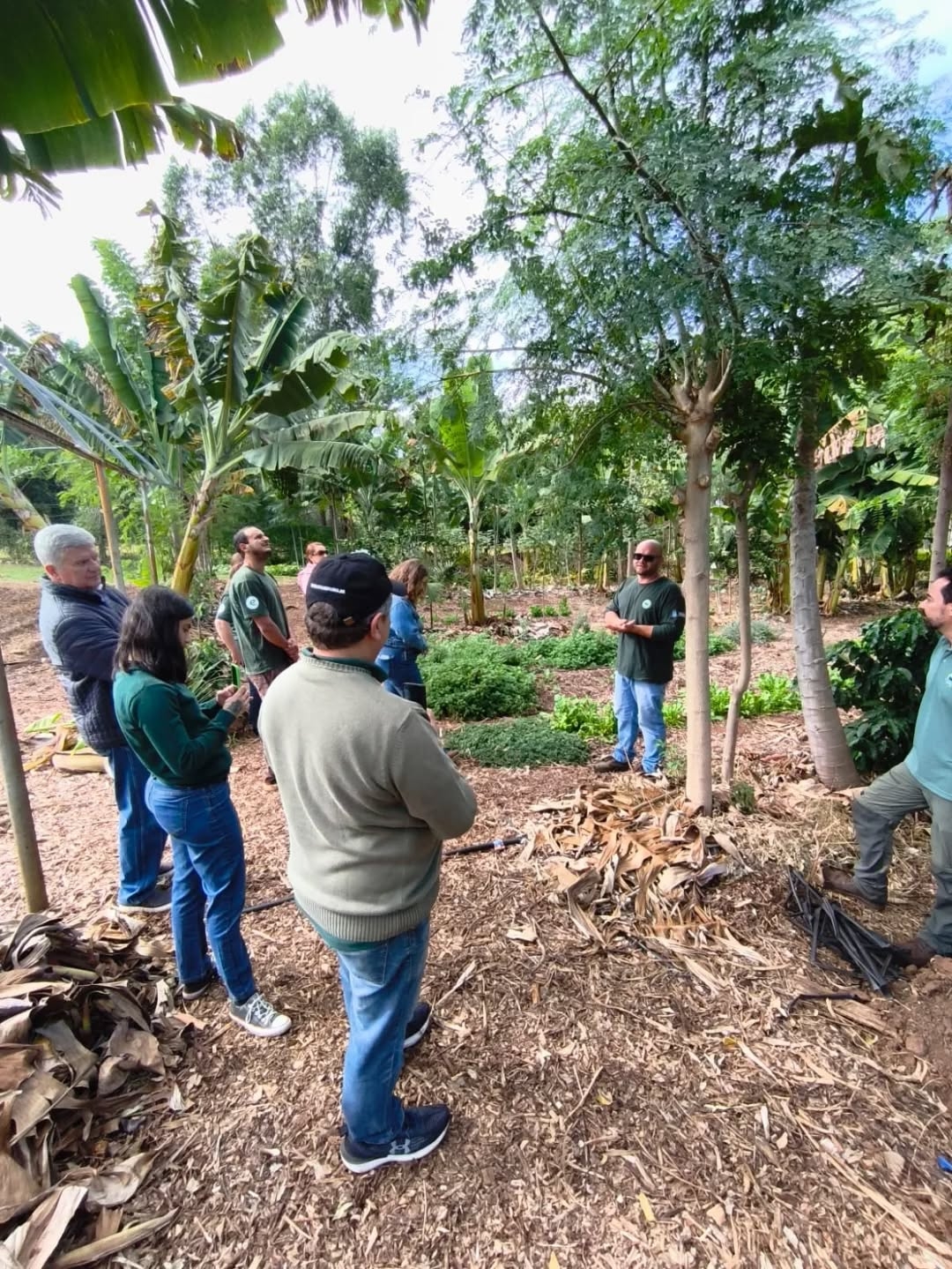 Os participantes percorreram os principais espaços do programa, incluindo a Escola de Educação Ambiental do Nhumirim, a Floresta Viva e o Bosque Municipal. A passagem pela agrofloresta da Escola foi um dos pontos altos da programação, proporcionando aos visitantes uma aula prática sobre técnicas agroflorestais de plantio, cultivo e manejol.