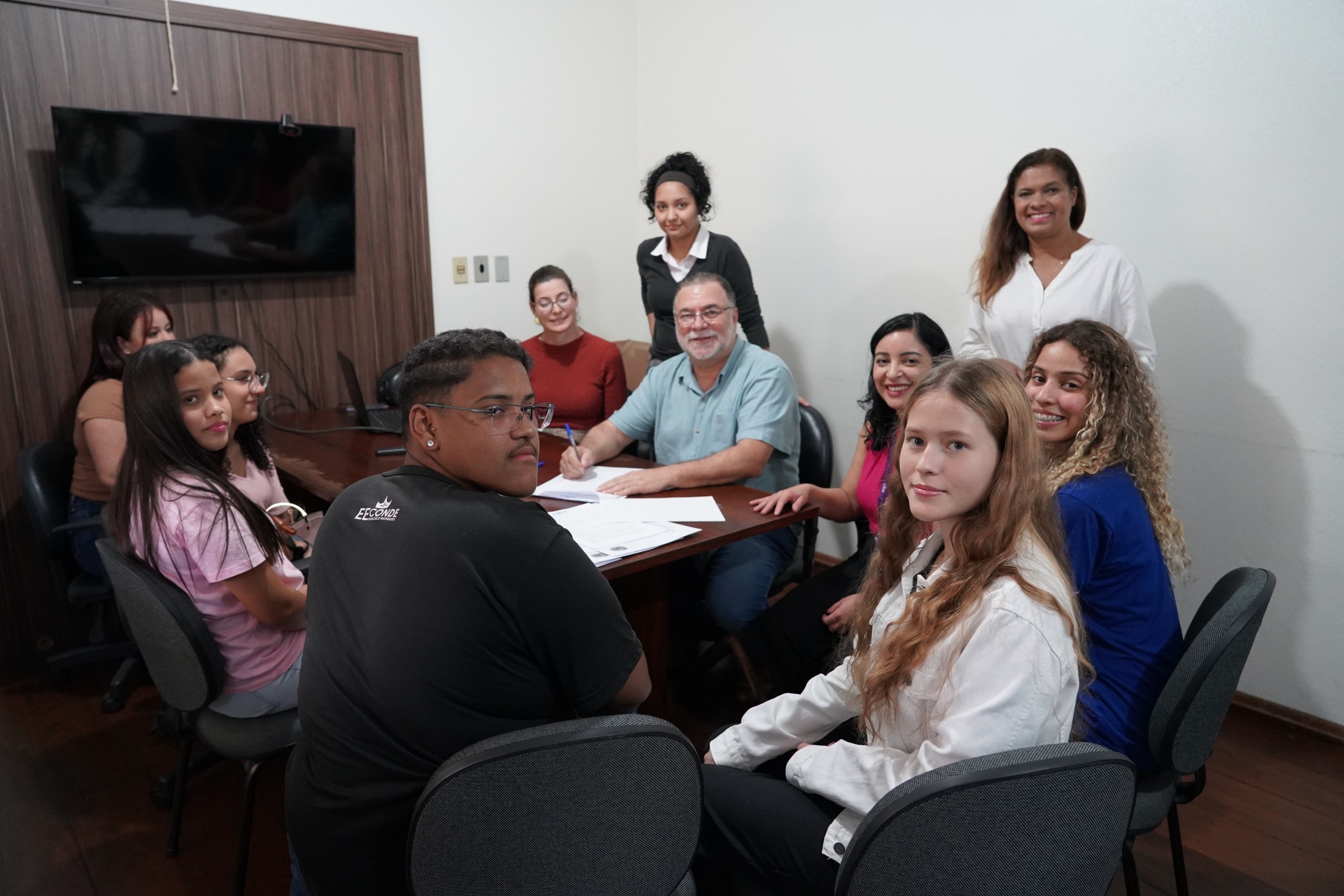 Cursando Administração, Agronegócio e Vendas, além do Ensino Médio nos 2º e 3º anos, os(as) estagiários(as) — Ana Lívia Costa dos Santos, Bryan Mateus Balduino Rocha, Geovana Marua Chavier Rodrigues, Maisa Vitória Rufino Mesquita, Maria Clara Cardoso Gervasio, Maria Eduarda Marciano Martins Duarte, Maria Eduarda Vitória Nunes e Miriel Augusto Ferreira da Silva — atuarão em diversos departamentos da administração municipal.