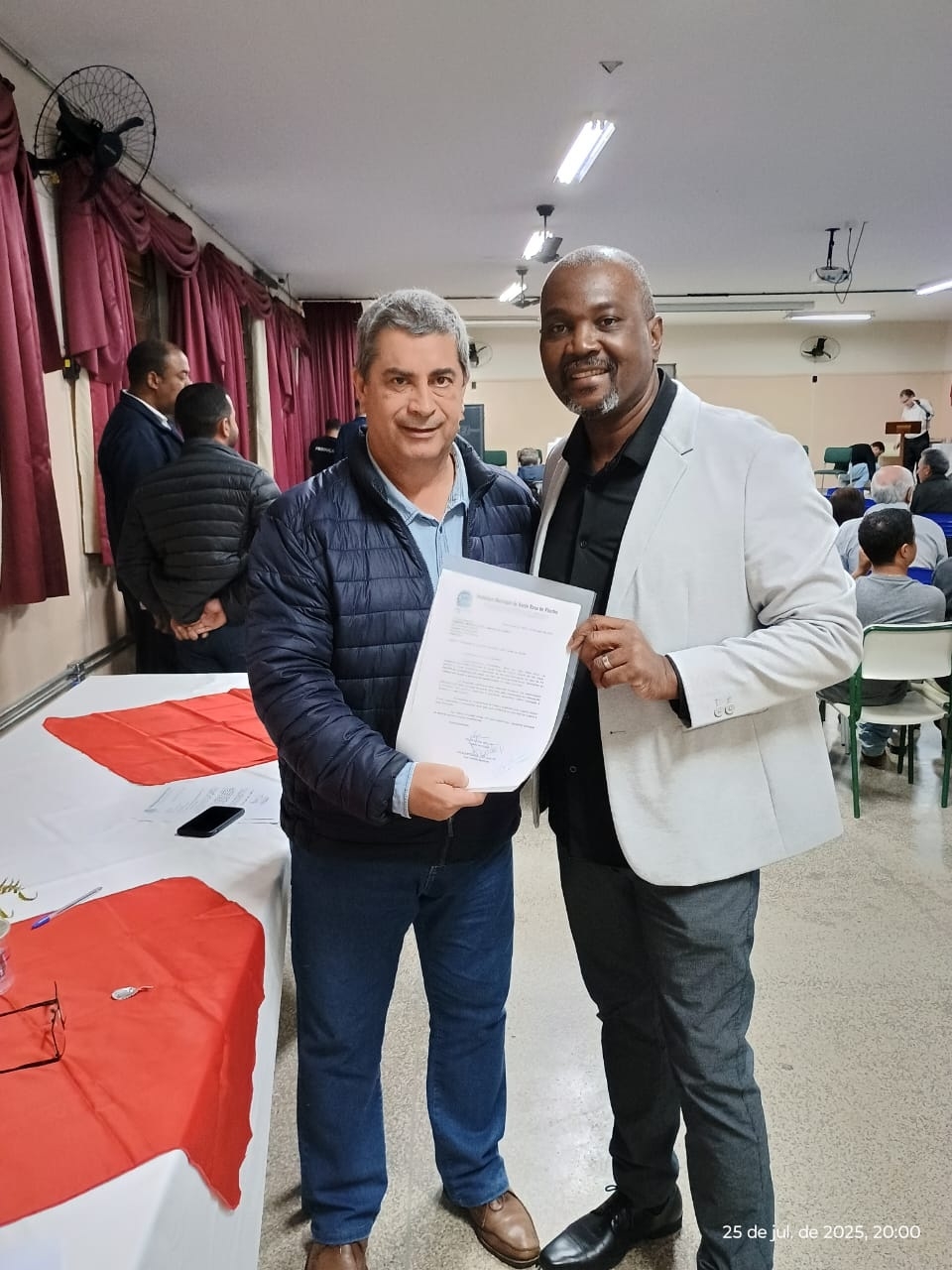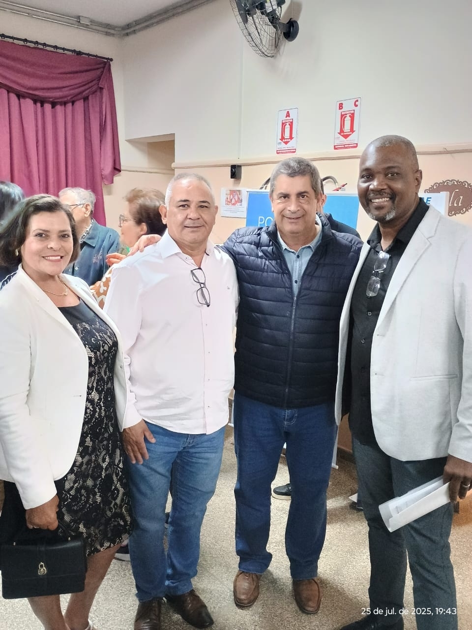 O vice-prefeito de Santa Rosa de Viterbo, Paulão Santos, e o chefe de gabinete, Guilherme Felizardo, representaram o município no 1º Encontro de Prefeitos, realizado na última quinta-feira (25), em Cássia dos Coqueiros. O evento teve como destaque o lançamento oficial do Plano Safra 2025/2026 e contou com a presença de autoridades políticas e representantes de diversas cidades da região.