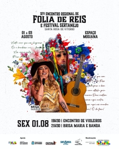 Teremos Encontro de Violeiros e, para encerrar a noite com muita música, show com Brisa Maria e Banda.