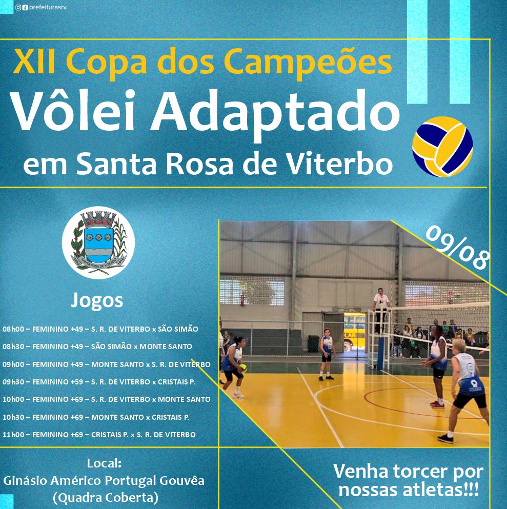 Neste sábado, 09 de agosto, Santa Rosa de Viterbo será palco da XII Copa dos Campeões de Vôlei Adaptado. As partidas começam às 08h00, no Ginásio de Esportes Américo Portugal Gouvêa (Quadra Coberta).
