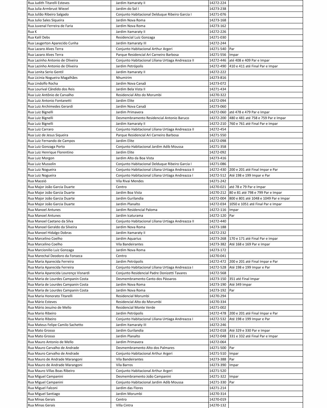 Para consultar o CEP de seu logradouro, acesse também: https://buscacepinter.correios.com.br/.../local.../index.php