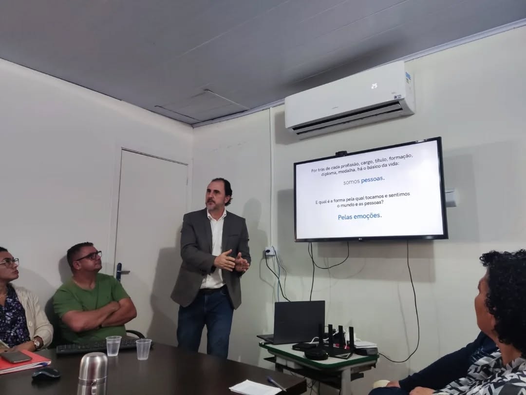 No dia 06 de agosto, a equipe do Departamento Municipal de Educação participou de uma inspiradora roda de conversa com o renomado jornalista, poeta, escritor e cientista político João Augusto do Carmo. Em uma tarde marcada por reflexões profundas sobre saúde mental, emoções, linguagem, o que é ensinar, educar e a importância da cultura, a equipe do DME vivenciou um momento de escuta sensível, trocas significativas e fortalecimento do nosso propósito educativo.