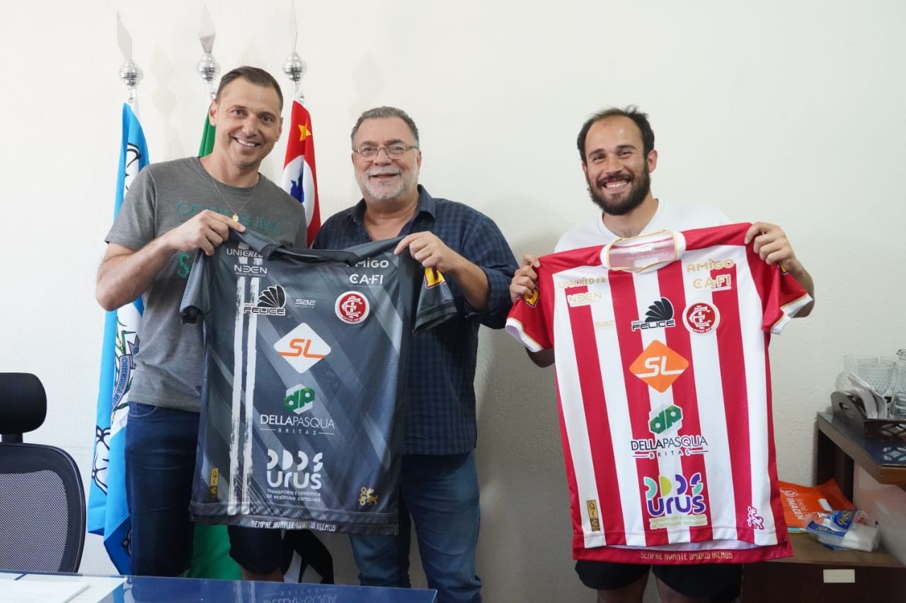 O goleiro santa-rosense Alexandre Villa esteve, na tarde desta terça-feira, 18, no gabinete, onde presenteou o prefeito Omar Nagib com camisas do Inter de Santa Maria — equipe que defendeu e que conquistou, recentemente, o acesso à elite do futebol gaúcho. A partir de 2026, o clube disputará a tão sonhada Série A do Gauchão.