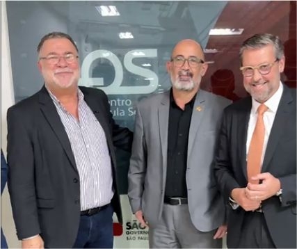 Em nome de Santa Rosa de Viterbo, o prefeito Omar Nagib agradece aos deputados Carlos Sampaio e Rafael Silva pelo apoio ao município, ao diretor do Centro Paula Souza, professor Clóvis Dias, e ao professor Cláudio Pires, coordenador da Etec de Santa Rosa de Viterbo, pela parceria e empenho em fortalecer a educação e ampliar as oportunidades para os jovens da cidade.