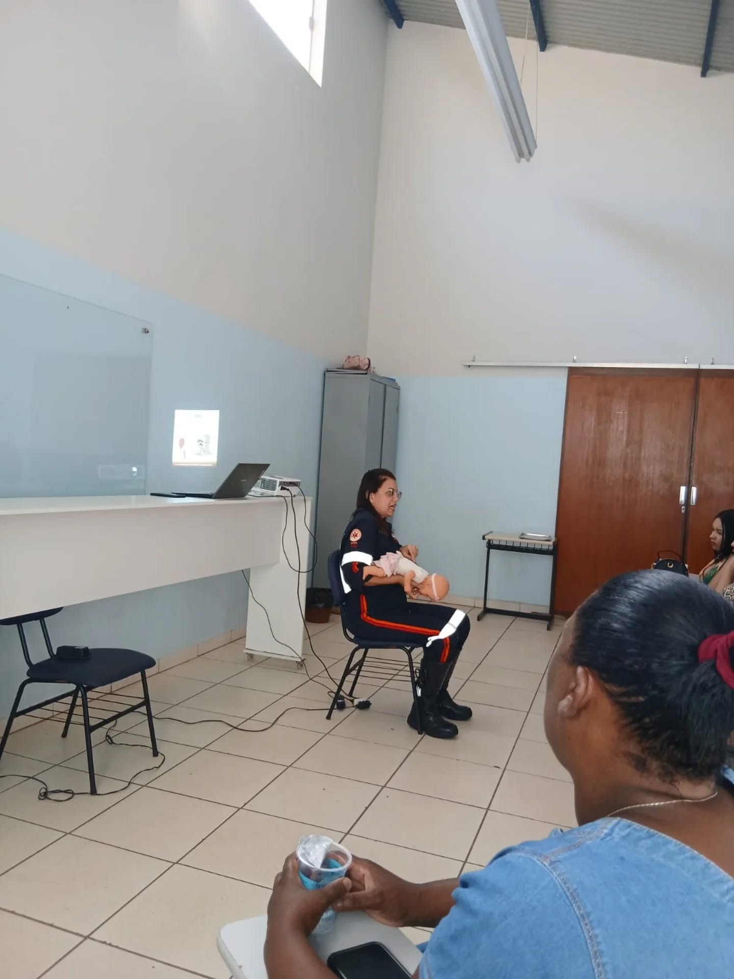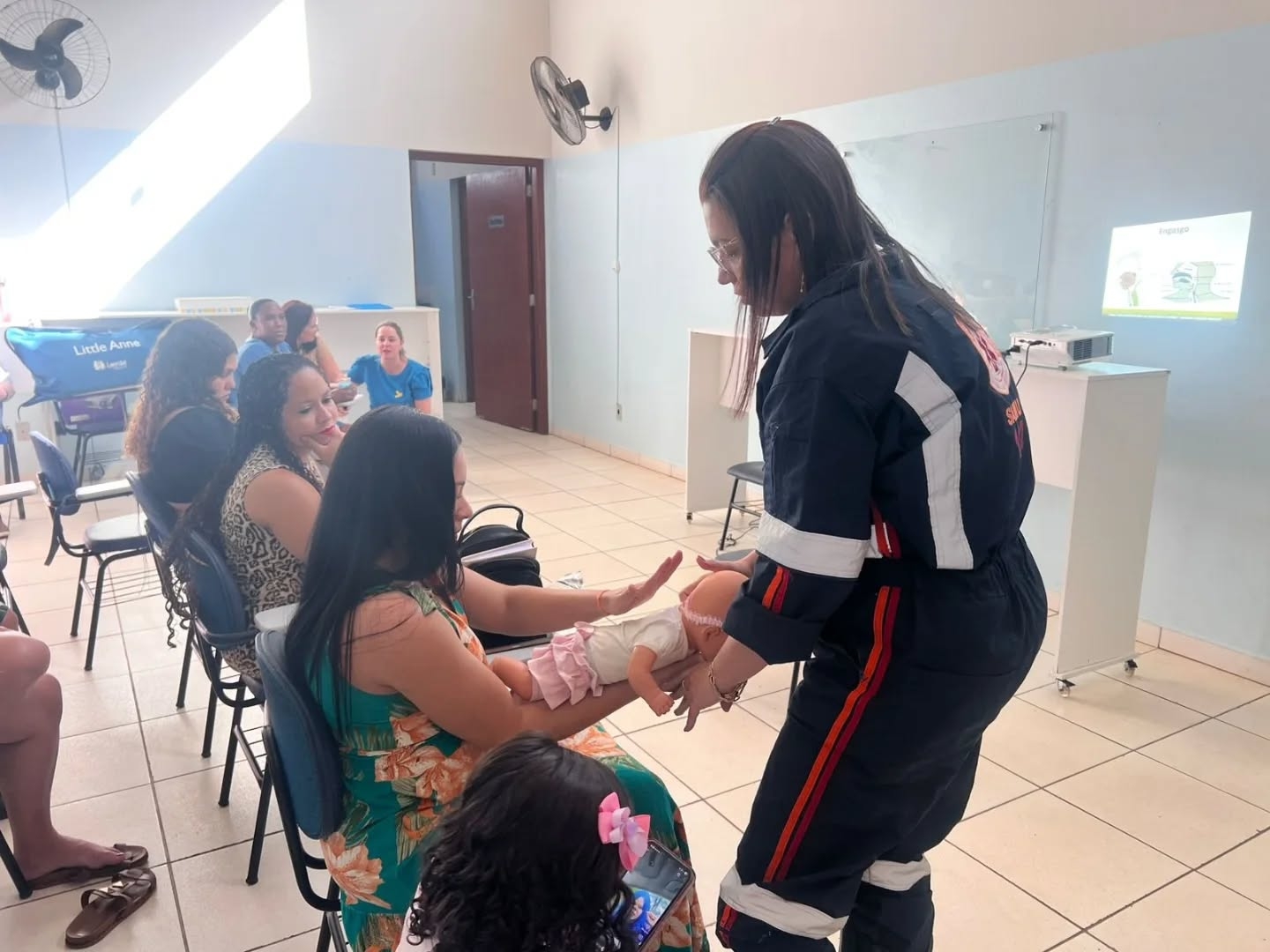 Engasgo em Bebês (prática), conduzida pela enfermeira Michele Costa, do SAMU.