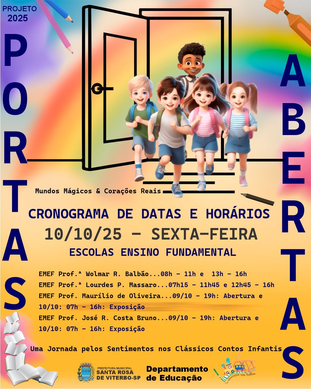 O Departamento Municipal de Educação, da Prefeitura de Santa Rosa de Viterbo, criou em 2023 o Projeto "Portas Abertas" para ser desenvolvido nas escolas municipais. A Rede Municipal de Educação de Santa Rosa de Viterbo, acredita em uma escola que não se "fecha em muros", mas se abre em gestos, escuta e acolhimento.