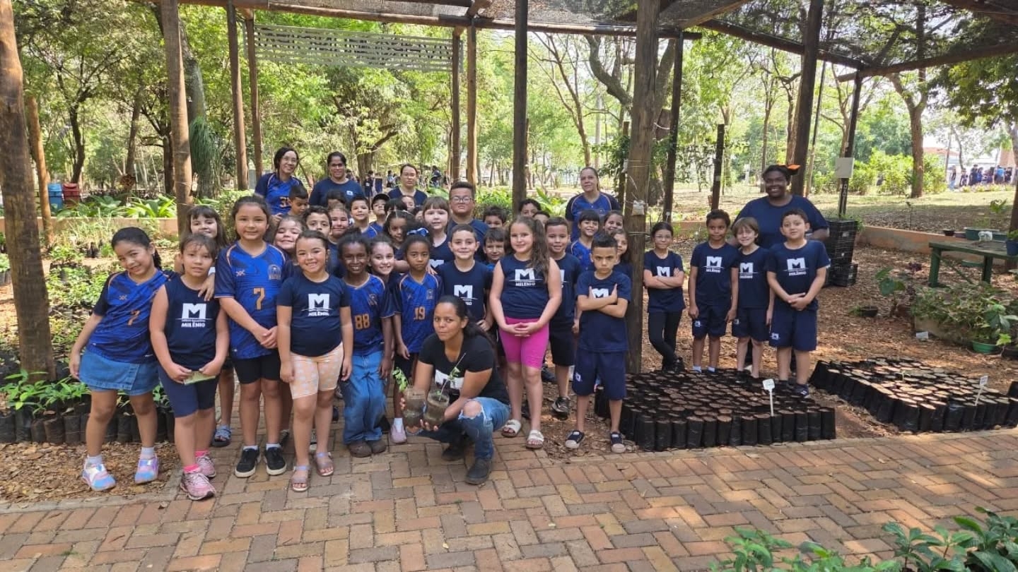 Durante a Semana da Criança, os alunos da Educação Infantil e do Ensino Fundamental I do Instituto Educacional Milênio visitaram o Bosque Municipal e levaram inúmeras sementes, que foram doadas ao Viveiro Municipal — uma ação que buscou conscientizar os pequenos sobre a importância da arborização e da ampliação das áreas verdes em nosso município.