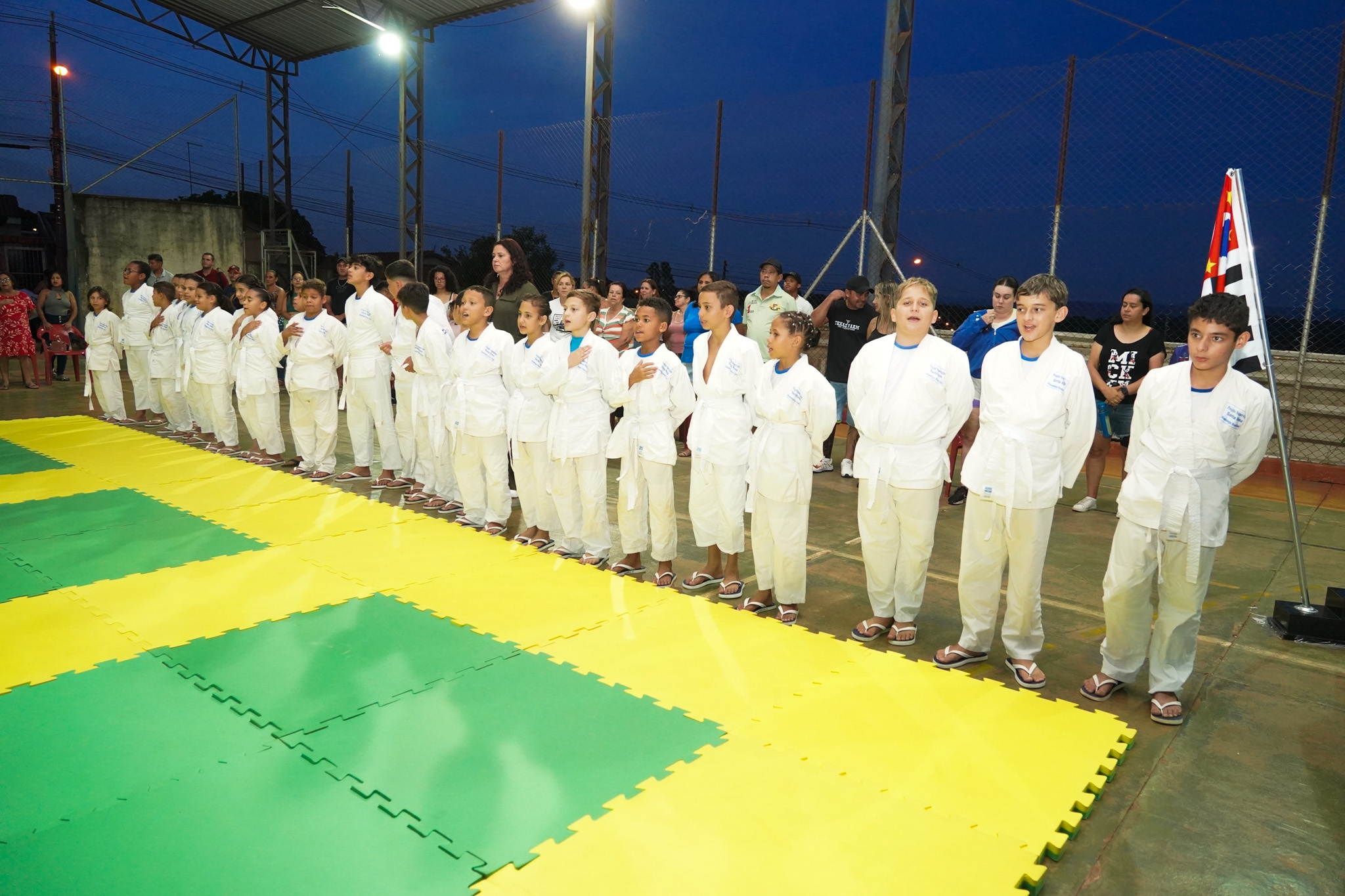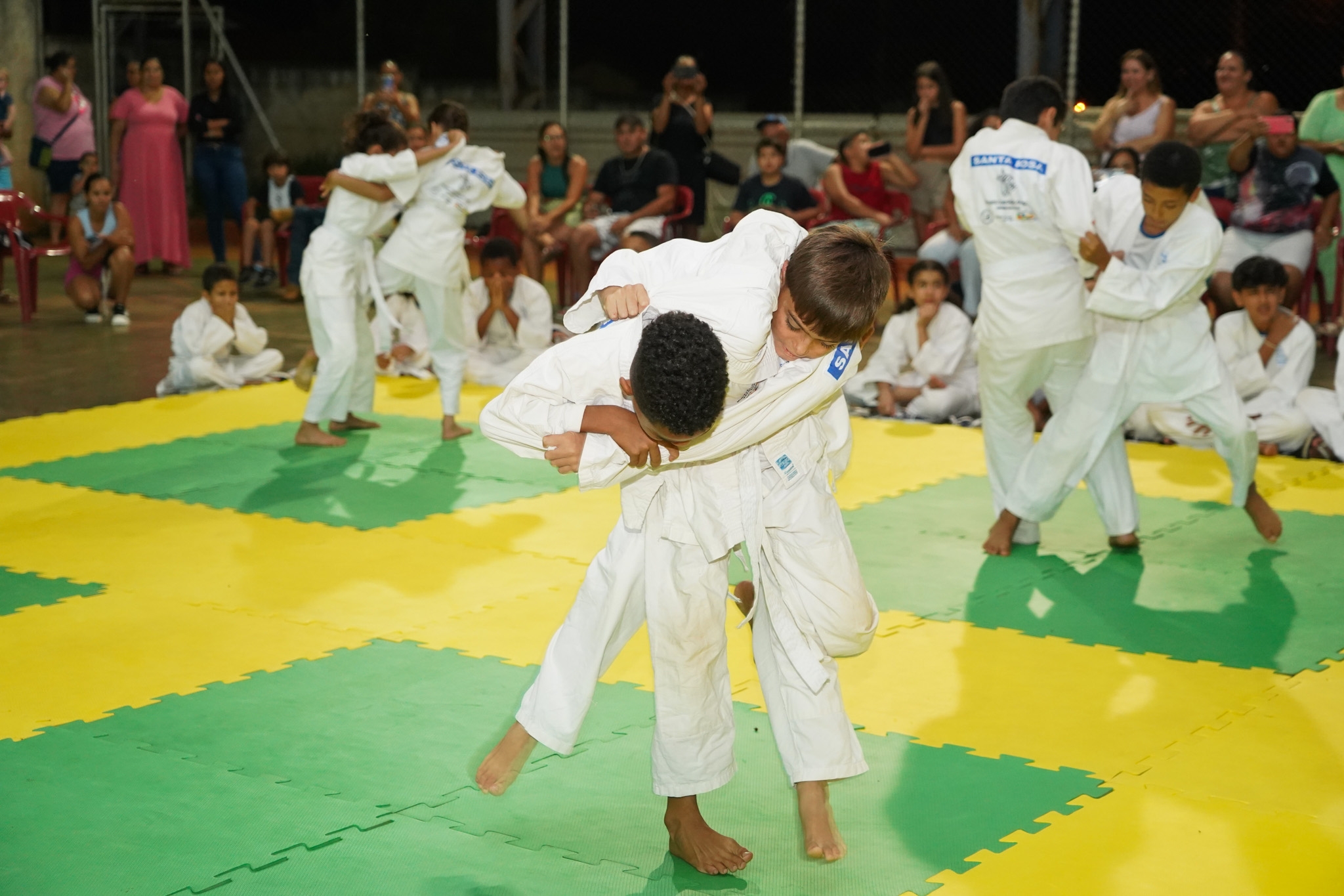 O 1º Festival de Judô do Projeto SuperAção reuniu os alunos do Programa Recriança, dos polos Tio Pica-Pau e João Candinho, na noite desta quarta-feira, 12 de novembro, na Escola Lourdes Pereira Massaro, em Santa Rosa de Viterbo. O evento, que contou com a presença de pais, familiares e professores do Recriança, além dos vereadores Marinho Titarelli, Cidinha Estevam, Chico Vacis e Luís dos Reis Augusto (Bode), bem como do chefe do Setor de Esportes, Rafael Rodriguez, do diretor de Educação, Marcos Ferri, e do prefeito Omar Nagib, foi marcado por um clima de integração, incentivo ao esporte e celebração do aprendizado, proporcionando momentos de confraternização e espírito esportivo entre os participantes.