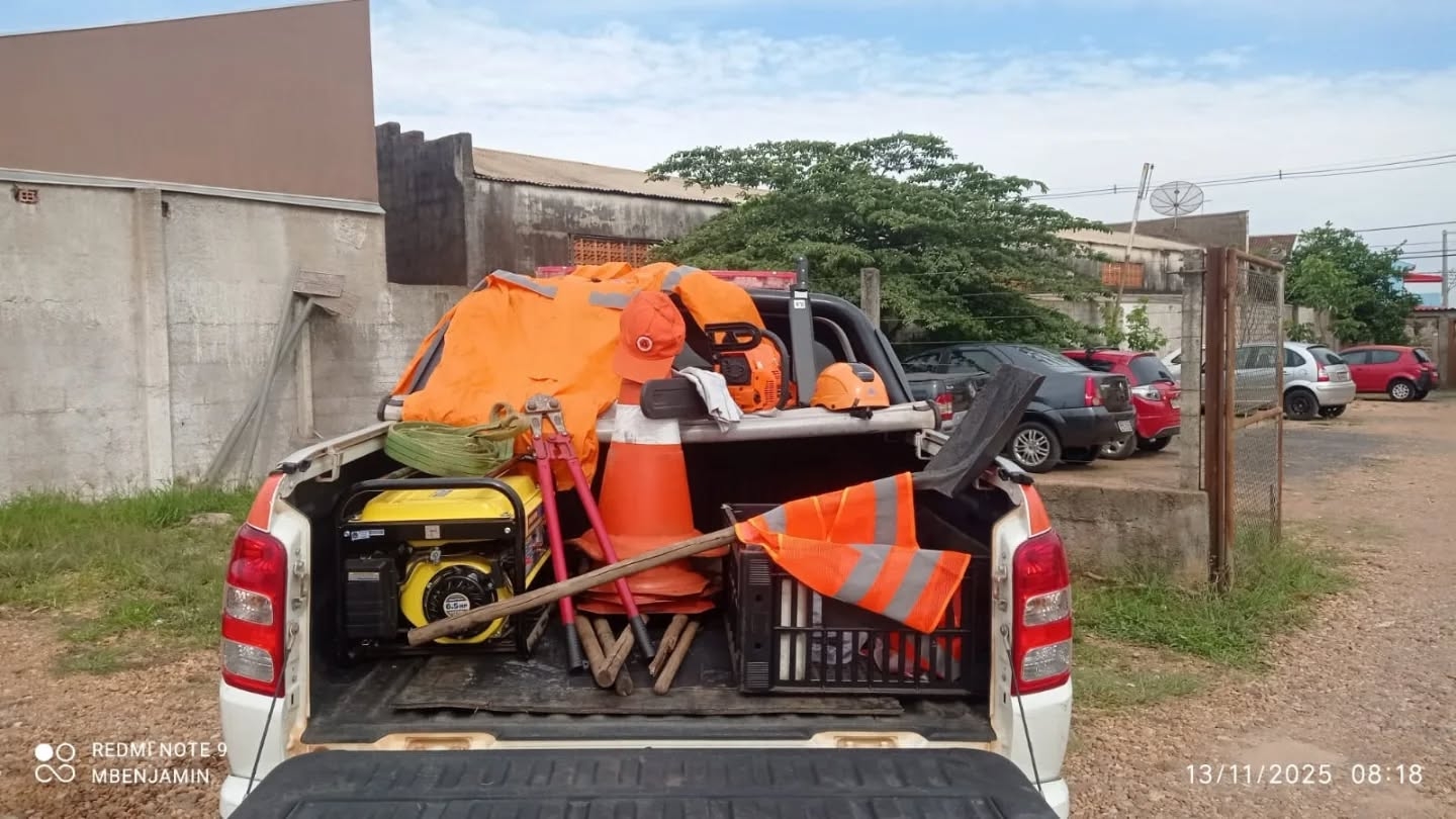 Equipada com motosserras, moto-podas, geradores, bombas d 'água e ferramentaria, a equipe já está em estado de atenção para atendimentos à população em decorrência da chegada das chuvas.