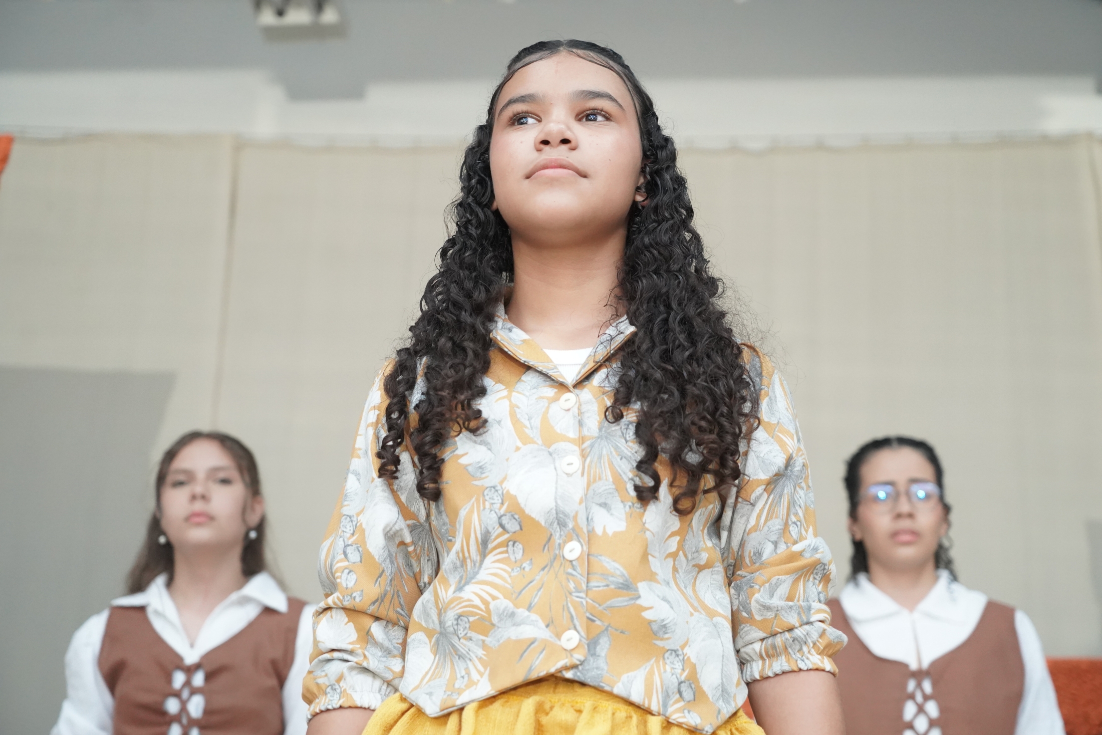 Com estética marcante e forte impacto emocional, Flor do Meu Sertão encerrou a sequência de três apresentações do Projeto Oficinantes em Santa Rosa de Viterbo, na noite deste sábado, 15 de novembro, diante de mais uma plateia cheia — reforçando o engajamento do público com a programação cultural. A peça narrou a história de cinco irmãs que enfrentam o amor, a ausência e o silêncio que se instala quando alguém partiu. No centro da trama esteve Tereza, a mais jovem, que vive à espera de quem deixou apenas promessas breves e ecos persistentes. Com diálogos sensíveis e cenas construídas com forte carga poética, o espetáculo conduziu o público por um sertão onde o tempo é árido, mas a esperança insiste em florescer.
