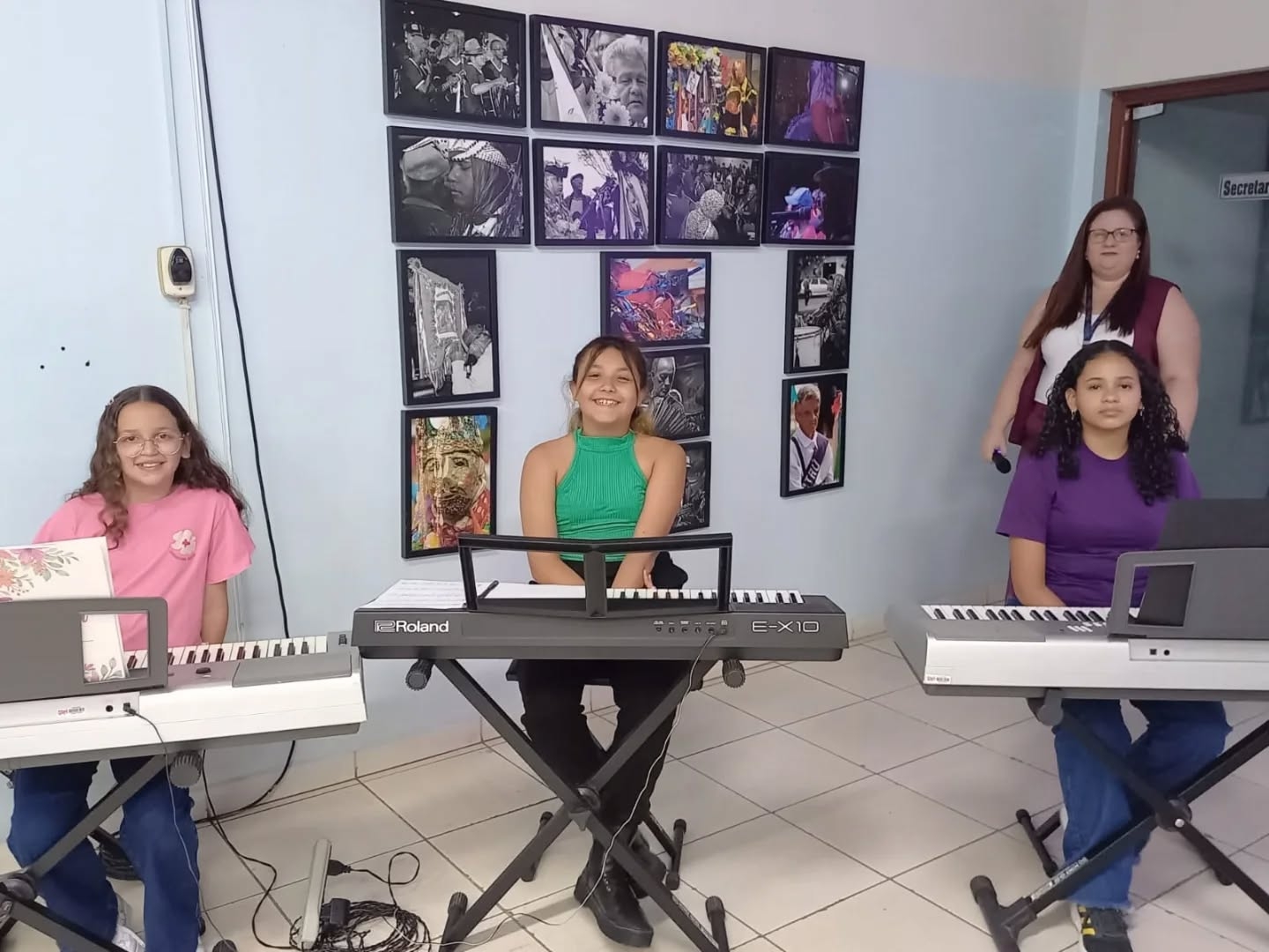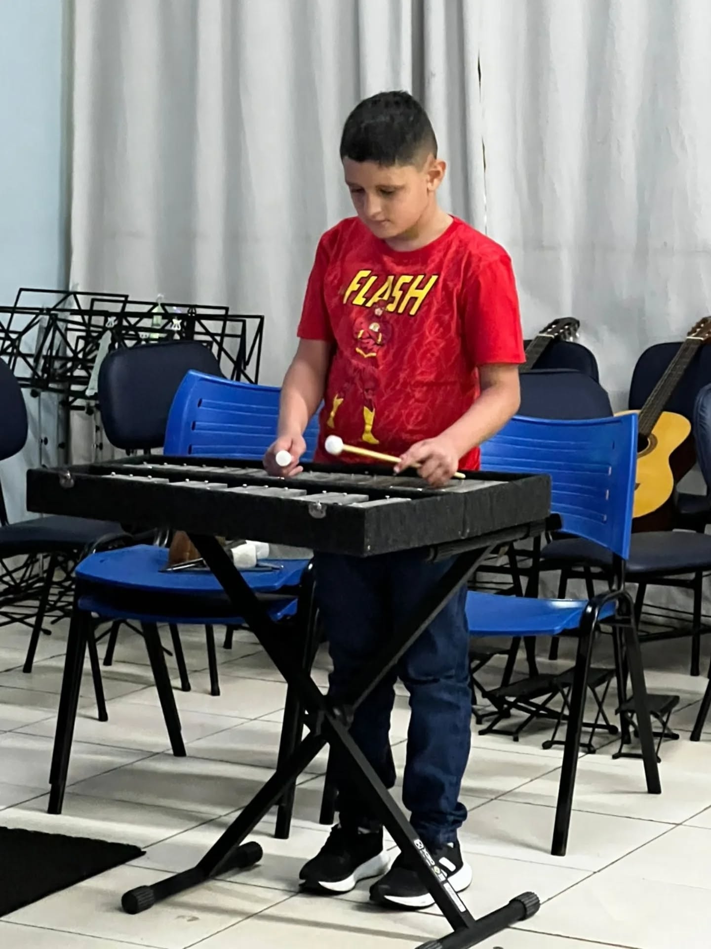 O Guri Santa Rosa de Viterbo realizou, nos dias 24 e 26 de novembro, apresentações que celebraram o encerramento do semestre dos alunos atendidos pelo Polo. As mostras reuniram estudantes de Iniciação Musical, Coral Sequenciais I, II e III, além das turmas de Violão, Teclado e Percussão, que encantaram o público em cada nota, acorde e canção entoada, demonstrando com sensibilidade o aprendizado e os avanços conquistados ao longo dos últimos meses.