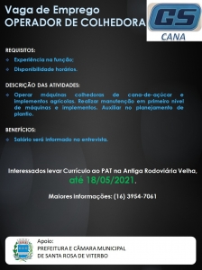 Vaga de Emprego: Operador de Colhedora