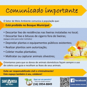 COMUNICADO: PROIBIÇÕES NO BOSQUE MUNICIPAL