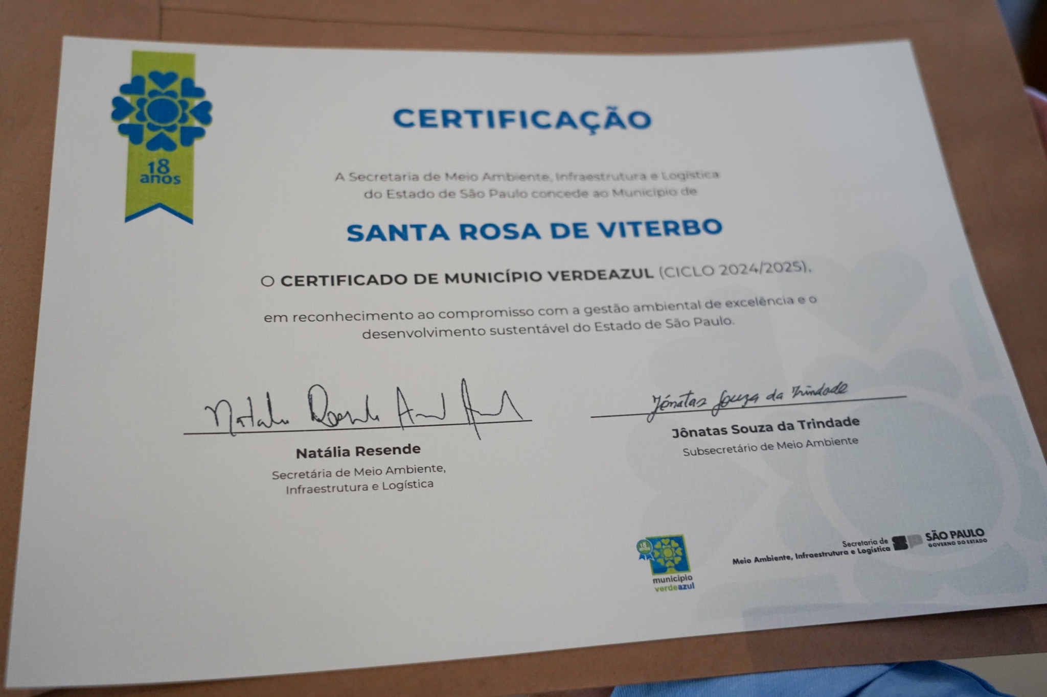 Além da certificação, Santa Rosa de Viterbo foi um dos três municípios da região de Ribeirão Preto contemplados pelo Chamamento Público nº 01/2025, da Secretaria de Meio Ambiente, Infraestrutura e Logística (SEMIL), com um caminhão de coleta seletiva indicado pelo Fundo Estadual de Prevenção e Controle da Poluição (FECOP).