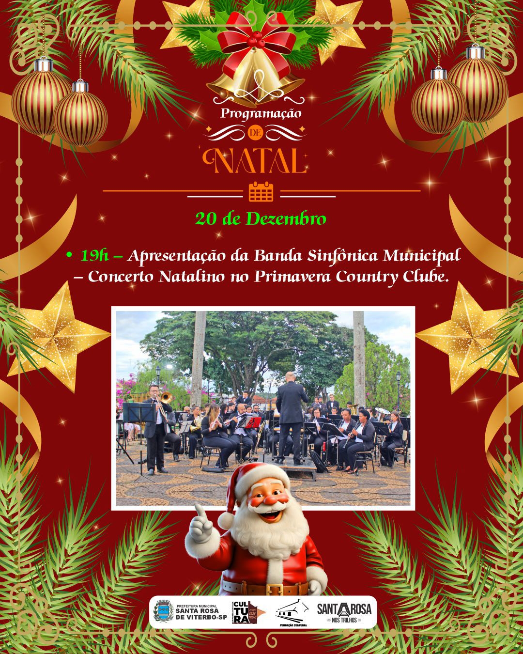 • 19h – Concerto natalino da Banda Sinfônica Municipal no Primavera Country Clube.