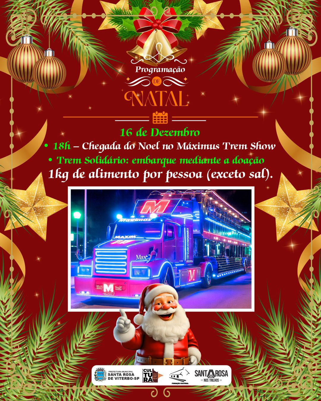 • 18h – Chegada do Noel no Máximus Trem Show.