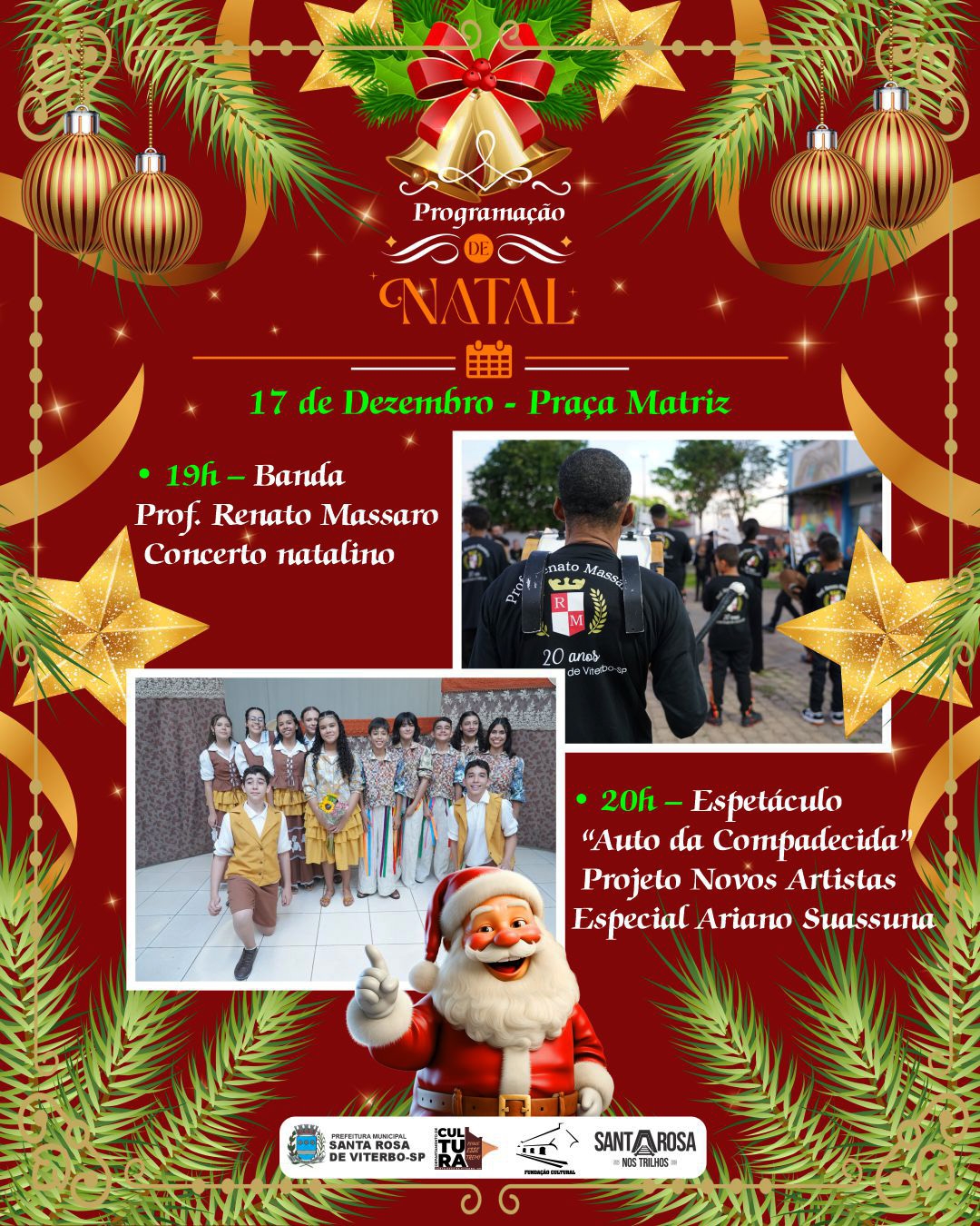 • 19h – Banda Professor Renato Massaro – Concerto natalino na Praça Matriz.