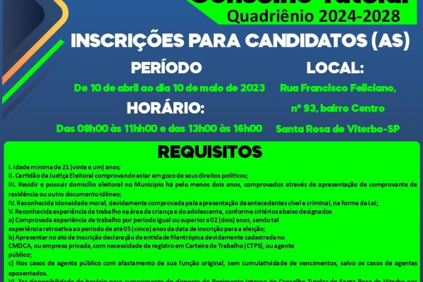 Inscrições para a Eleição 2023 do Conselho Tutelar começam dia 10 de abril