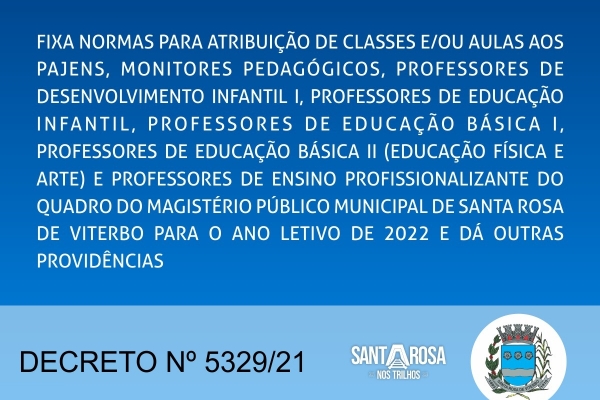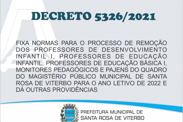 Decreto 5326 de 24/11/2021 - FIXA NORMAS PARA O PROCESSO DE REMOÇÃO DOS PROFESSORES DE DESENVOLVIMENTO INFANTIL I, PROFE