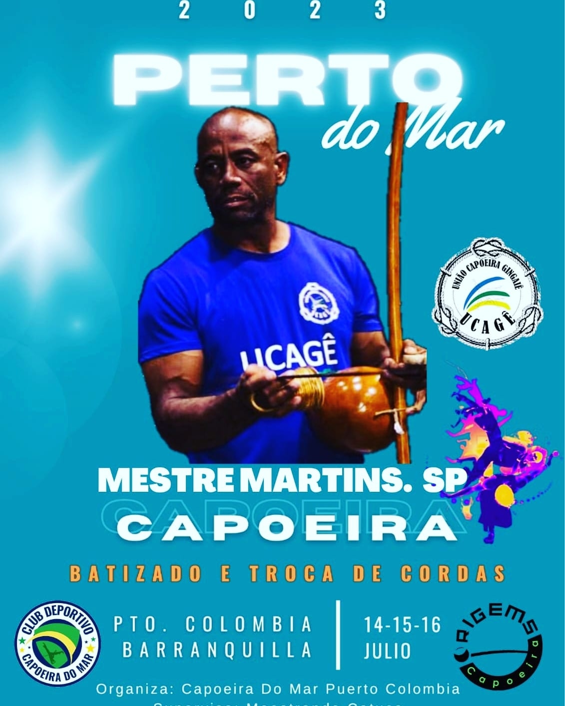 Apoiado pela Prefeitura Municipal, através da Diretoria de Desenvolvimento Social, o Mestre Martins embarca para Barranquilla, na Colômbia, nesta quarta-feira para participar de evento do Clube Esportivo H. Capoeira Do MAR, onde acontece cerimônia de batizado para iniciação de crianças e adultos na Capoeira e troca de cordas (graduação) para formar novos professores e mestres Capoeiristas.
