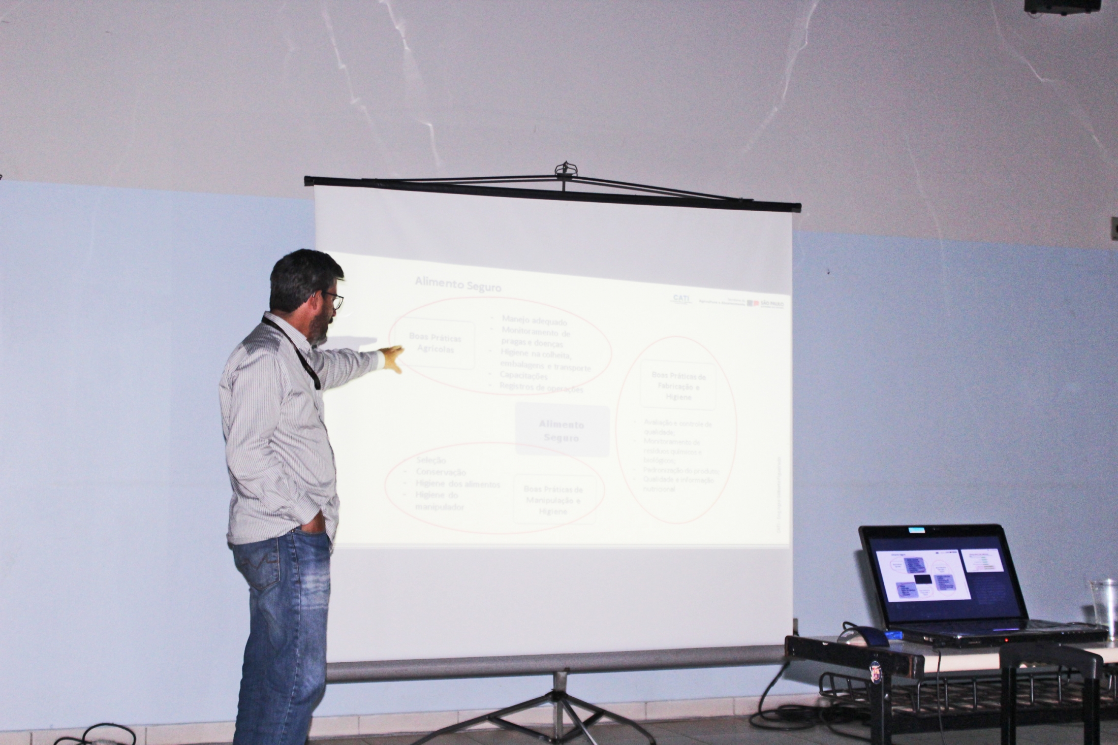 O Engenheiro Agrônomo da Coordenadoria de Assistência Técnica Integral (CATI), Carlos Henrique de Paula e Silva, abordou as regras da rastreabilidade e os requisitos mínimos para sua implementação, falou sobre as boas práticas para a produção do alimento seguro, a rotulagem visando o cumprimento da legislação vigente para a identificação do produtor ou o responsável pelo produto, e incentivou a adoção do Caderno de Campo, onde o produtor pode anotar e detalhar diariamente, todas as informações referentes a produção, desde o plantio até a colheita, a aplicação de agrotóxicos, entre outros, para facilitar a investigação dos órgãos de fiscalização quando for identificada alguma inconformidade na análise de resíduos de agrotóxicos. “Teremos que nos adaptar a isso de alguma maneira. E eu sou a favor que todos forneçam essas as informações. Isso vai fazer com que chegue na mesa do consumidor um produto de qualidade, seja para a criança ou para a gente” destacou.