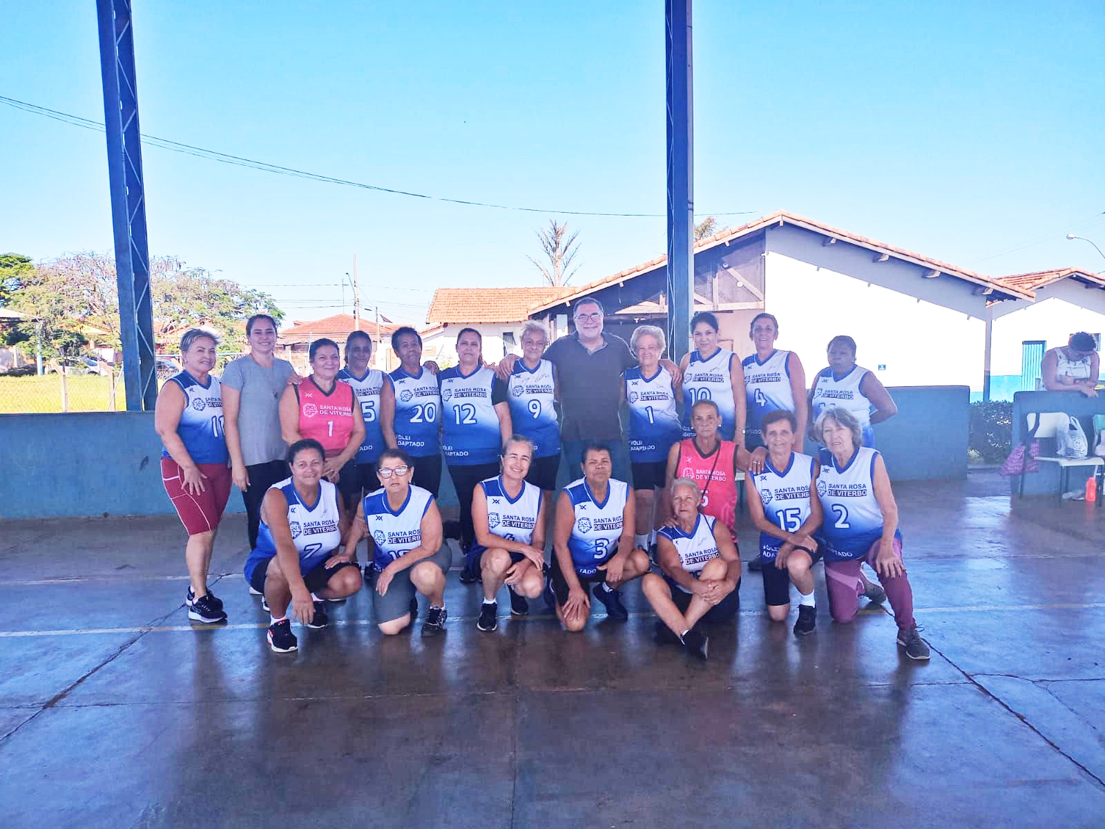 O Prefeito Omar Nagib prestigiou o treino da equipe de vôlei adaptado de Santa Rosa de Viterbo nesta manhã de quarta-feira. Sob a liderança da dedicada professora Franciane Félix de Sandre, temos 21 talentosas atletas, com idades entre 44 e 90 anos, competindo nas categorias 49+, 59+ e 69+.