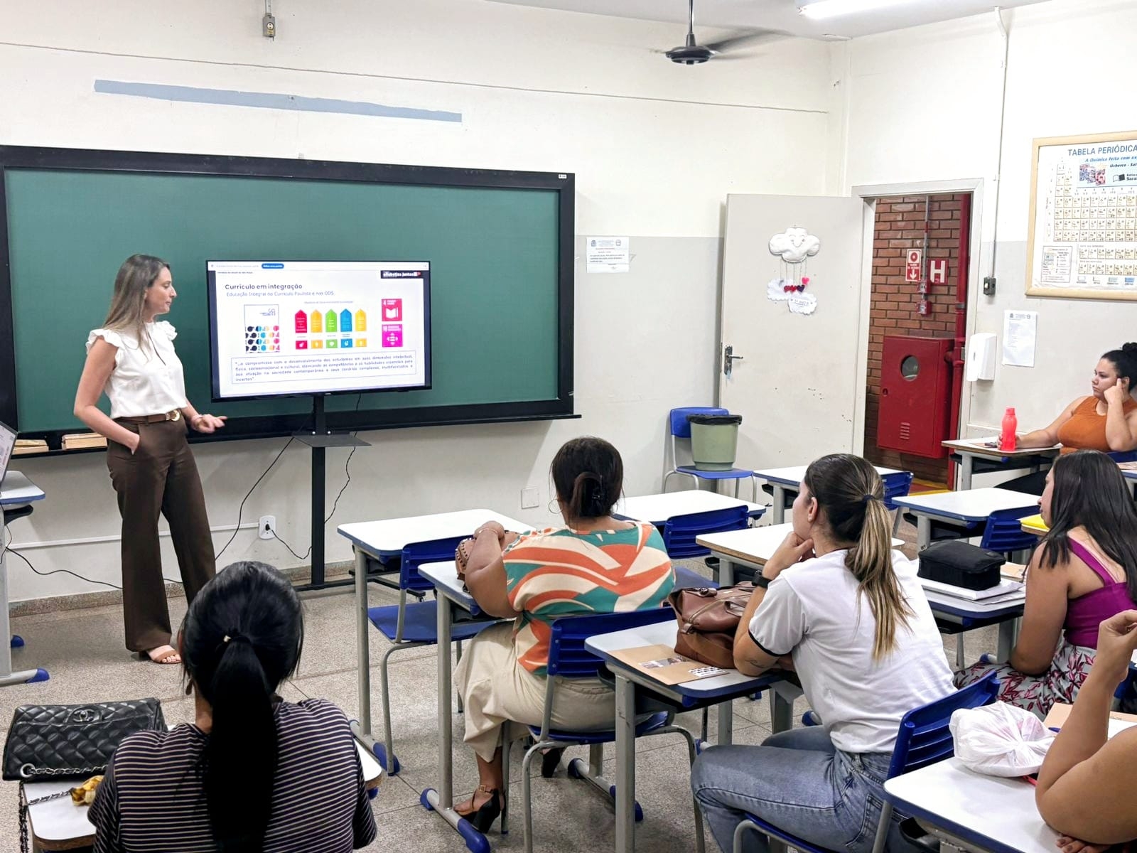 A formadora responsável pelo programa é a professora Daiana Cristina Zanardo Hoffmann e a articuladora é a professora Marinela Ferrari Bisca, que apresentaram o Currículo Paulista, as ODS e analisaram o resultado da Fluência Leitora juntamente com os professores durante o HTPC realizado no dia 13/05.