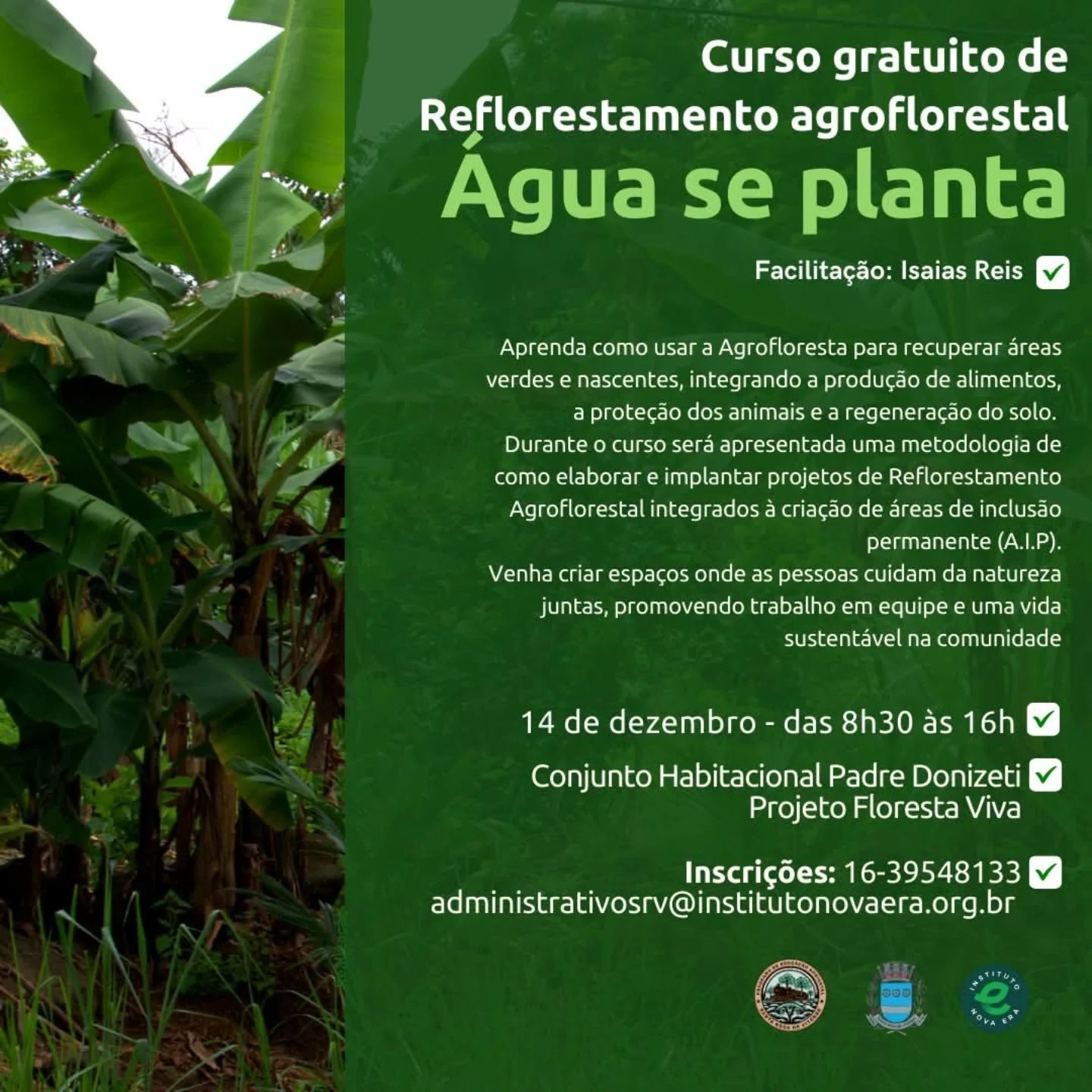 O Programa de Educação Ambiental de Santa Rosa de Viterbo convida você para o Curso Gratuito de Reflorestamento Agroflorestal: "Água se Planta"