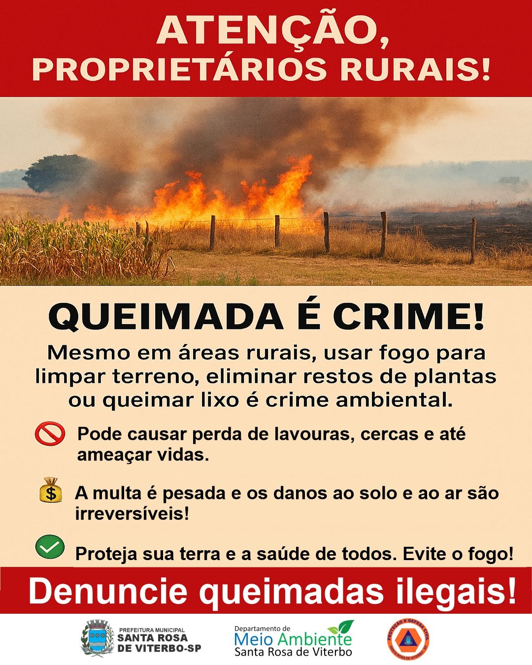 Mesmo em áreas rurais, usar fogo para limpar terreno, eliminar restos de plantas ou queimar lixo é crime ambiental.
