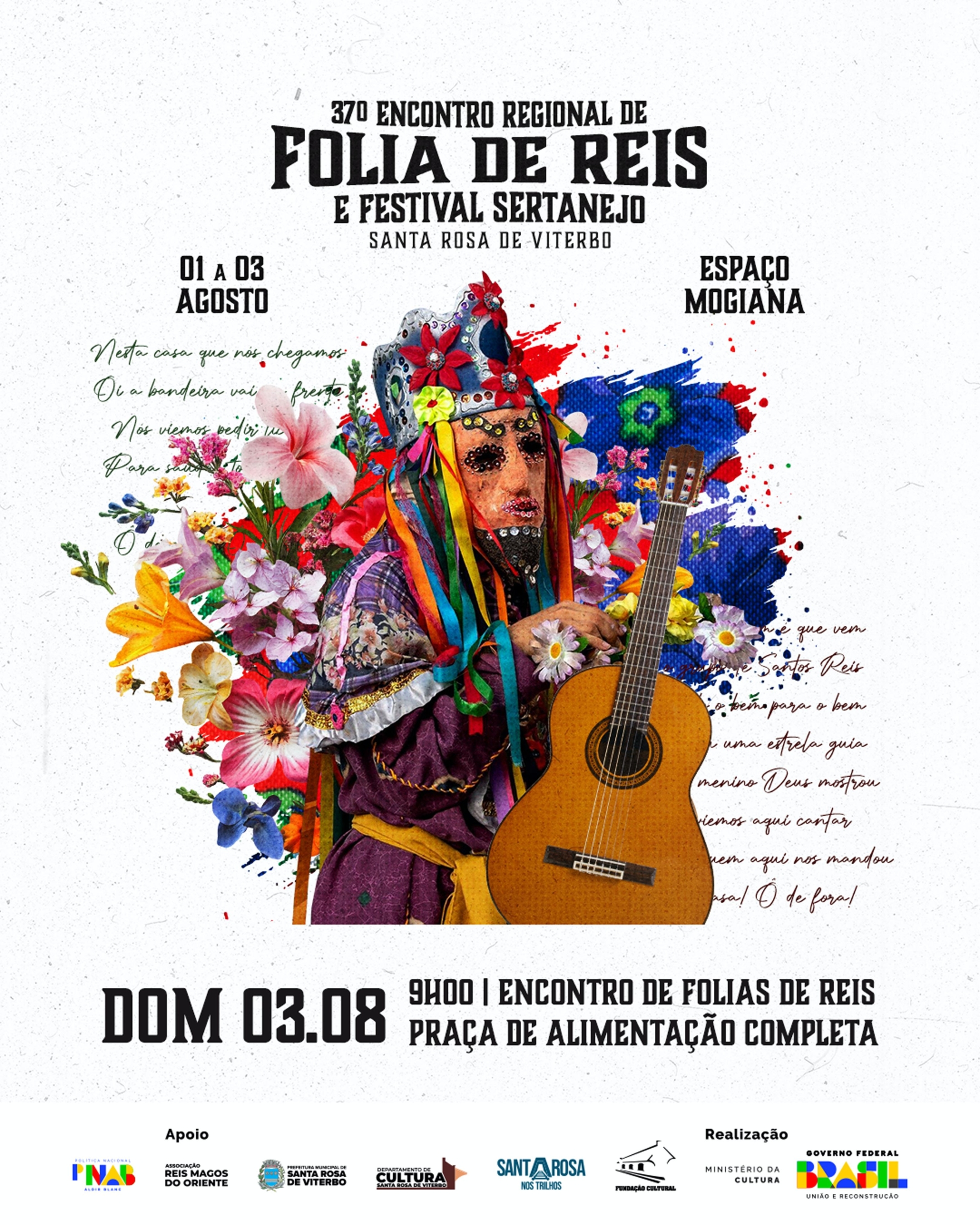 Santa Rosa de Viterbo se prepara para celebrar a cultura popular com o 37º Encontro Regional de Folia de Reis. O evento acontece de 1º a 3 de agosto, na esplanada do Espaço Mogiana, e promete reunir tradição, música e fé em uma programação especial que deve atrair um grande público durante os três dias de festa.