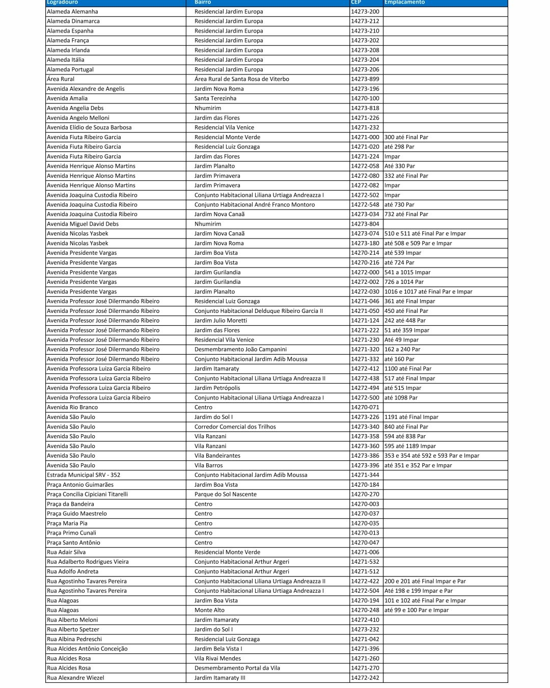 Consulta ao CEP por logradouro em Santa Rosa de Viterbo