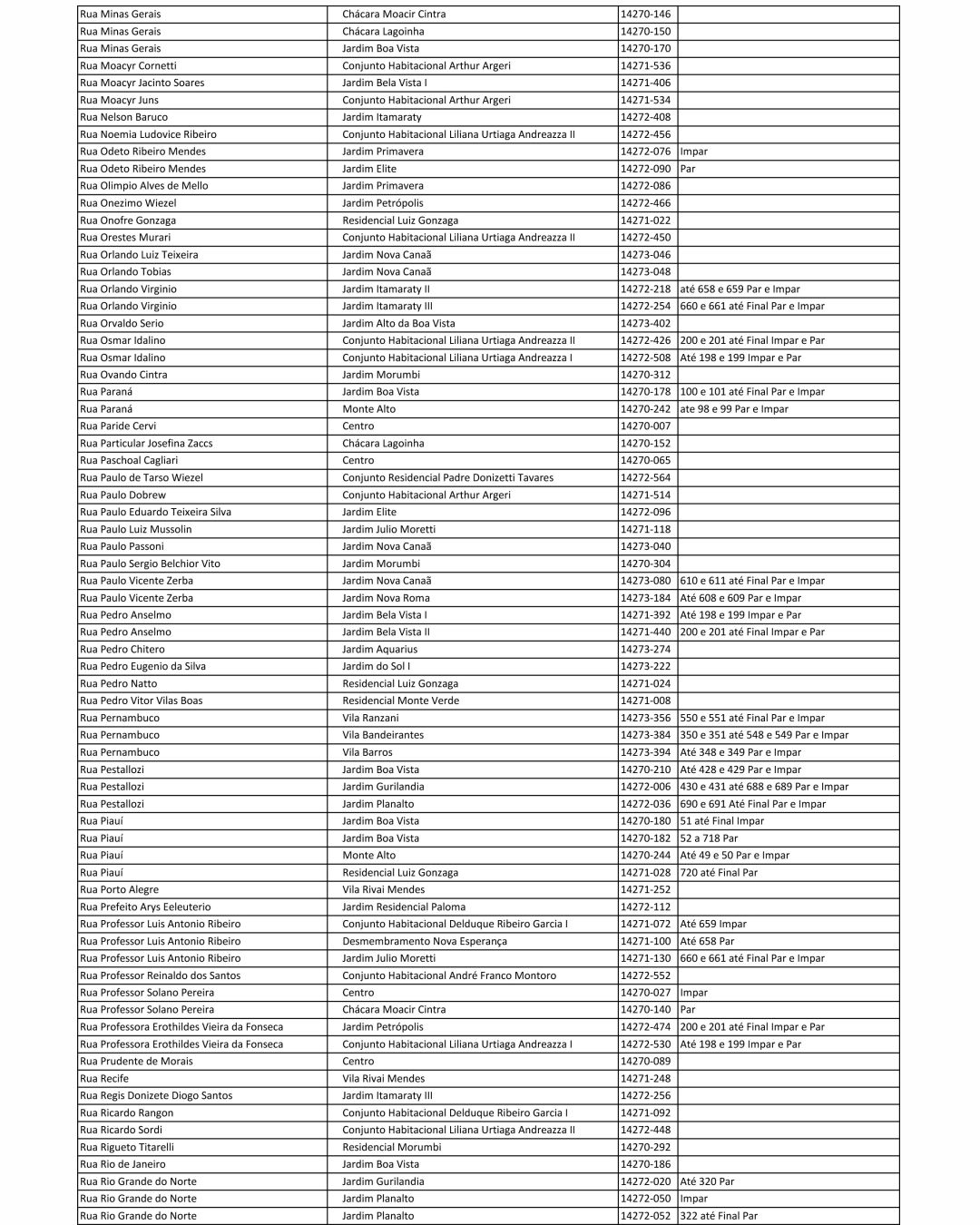 Para consultar o CEP de seu logradouro, acesse também: https://buscacepinter.correios.com.br/.../local.../index.php