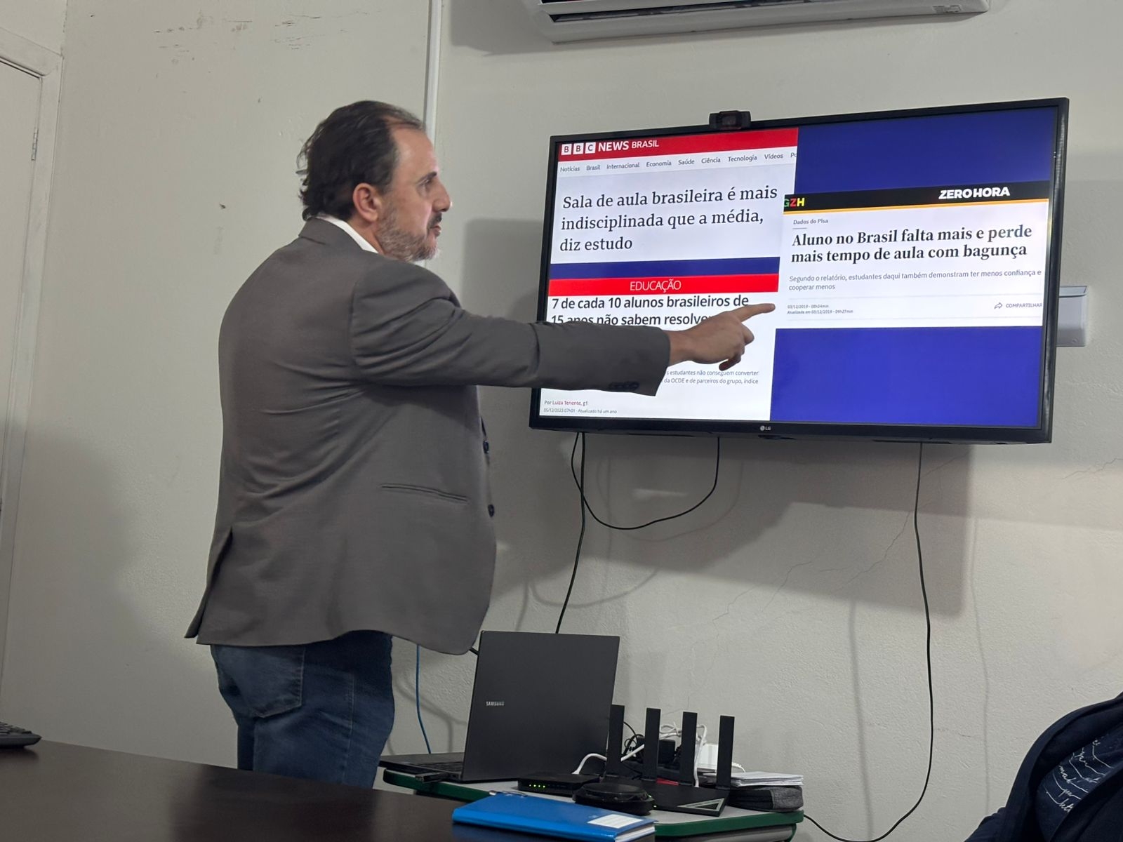 No dia 06 de agosto, a equipe do Departamento Municipal de Educação participou de uma inspiradora roda de conversa com o renomado jornalista, poeta, escritor e cientista político João Augusto do Carmo. Em uma tarde marcada por reflexões profundas sobre saúde mental, emoções, linguagem, o que é ensinar, educar e a importância da cultura, a equipe do DME vivenciou um momento de escuta sensível, trocas significativas e fortalecimento do nosso propósito educativo.