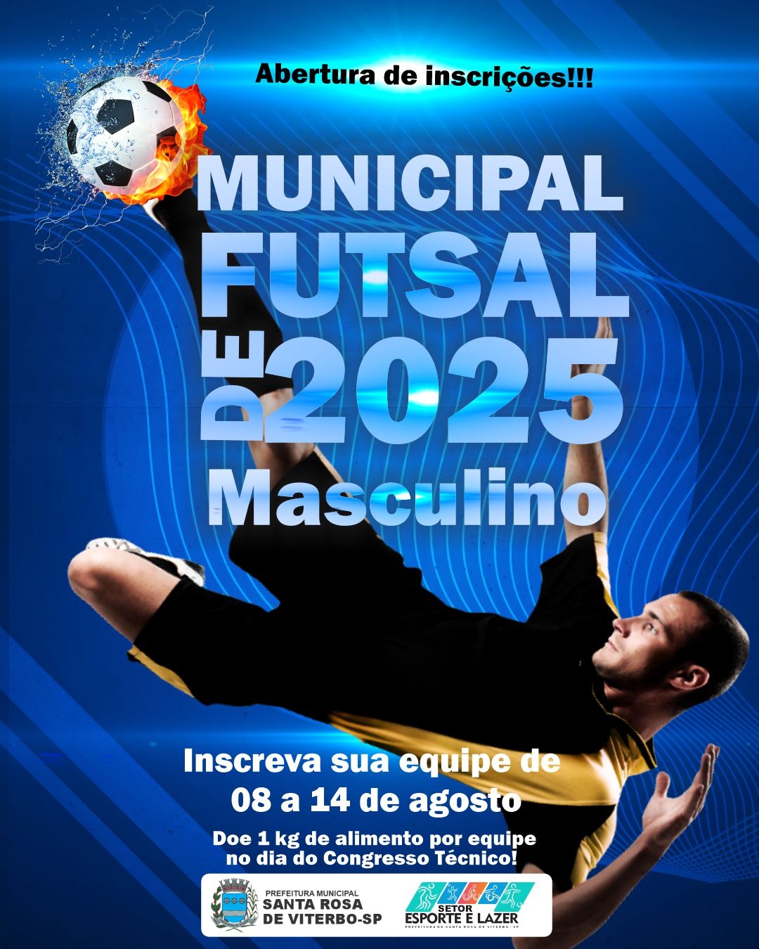 Cada equipe poderá inscrever de 10 a 15 atletas. A ficha de inscrição deve ser preenchida e enviada para o e-mail esporte@santarosa.sp.gov.br. O documento está disponível para download no site oficial da Prefeitura (na seção Secretarias > Esporte > Arquivos) ou diretamente pelo link: https://santarosa.sp.gov.br/pagina/356_Ficha-de-Inscricao-para-o-Municipal-de-Futsal.html?fbclid=IwY2xjawMIISRleHRuA2FlbQIxMAABHqaG8LmdQ335z6fqq1L9efALp4f8eU8-p2vLMLfc212j11-bUAKjiM-VOlEm_aem_wdxnuqpLZ3EG_9WgLldbLA