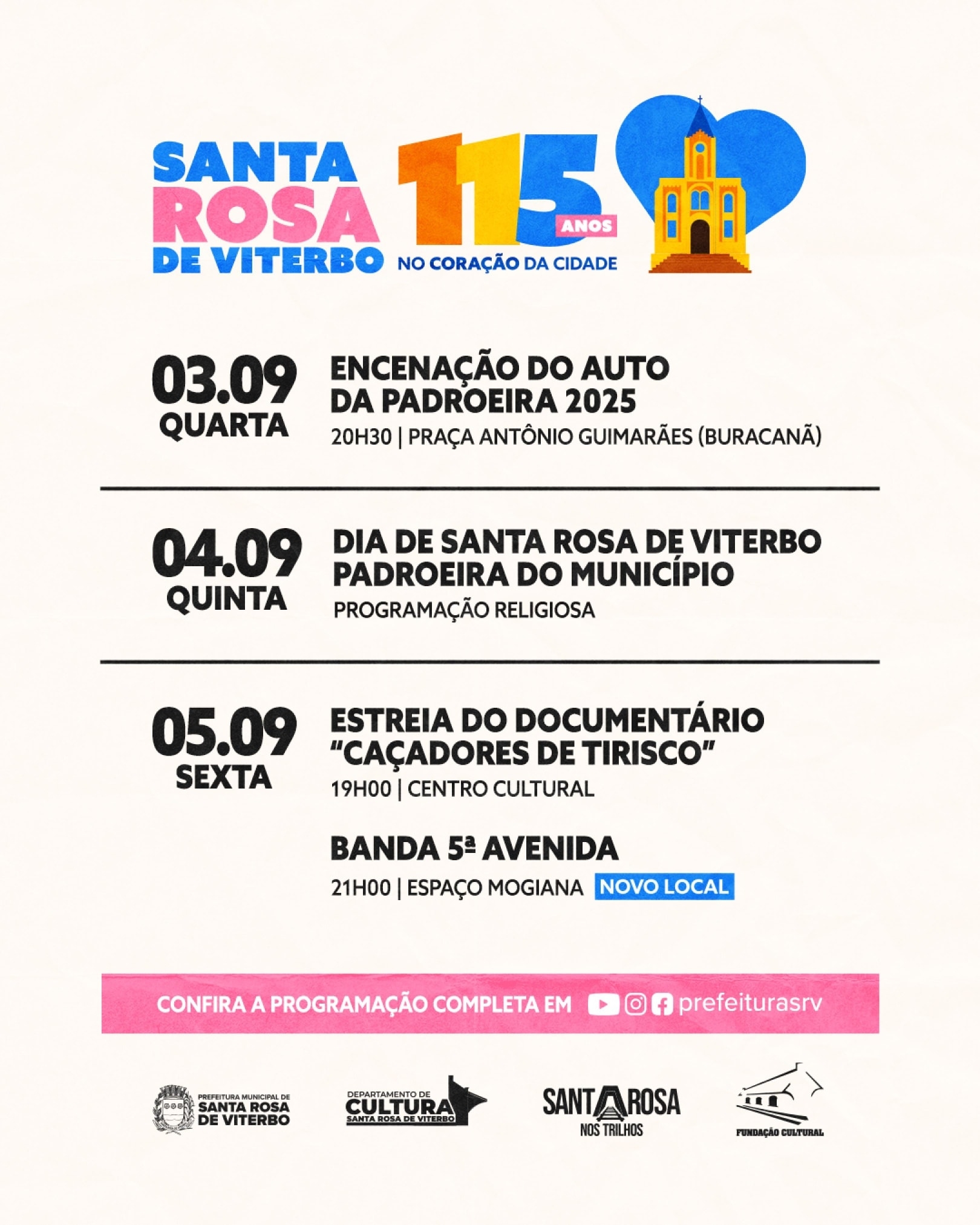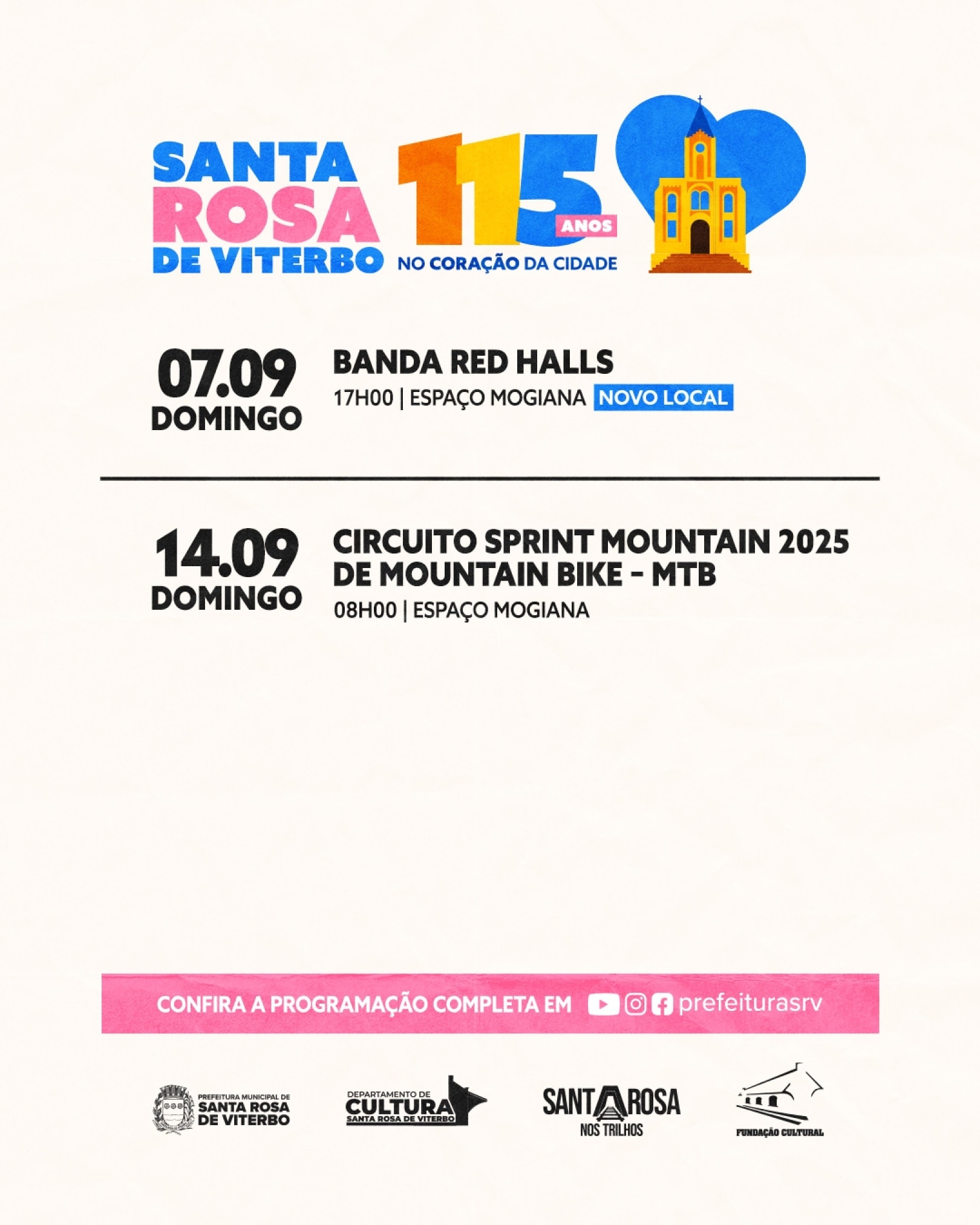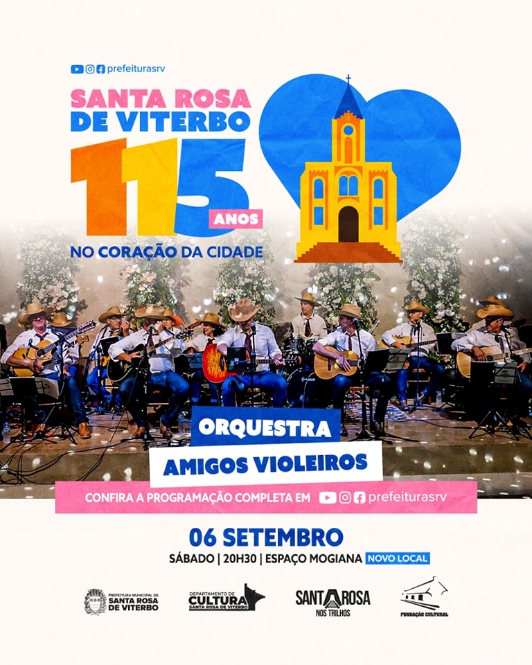 Informamos que os shows em comemoração ao aniversário da cidade foram transferidos para o Espaço Mogiana.