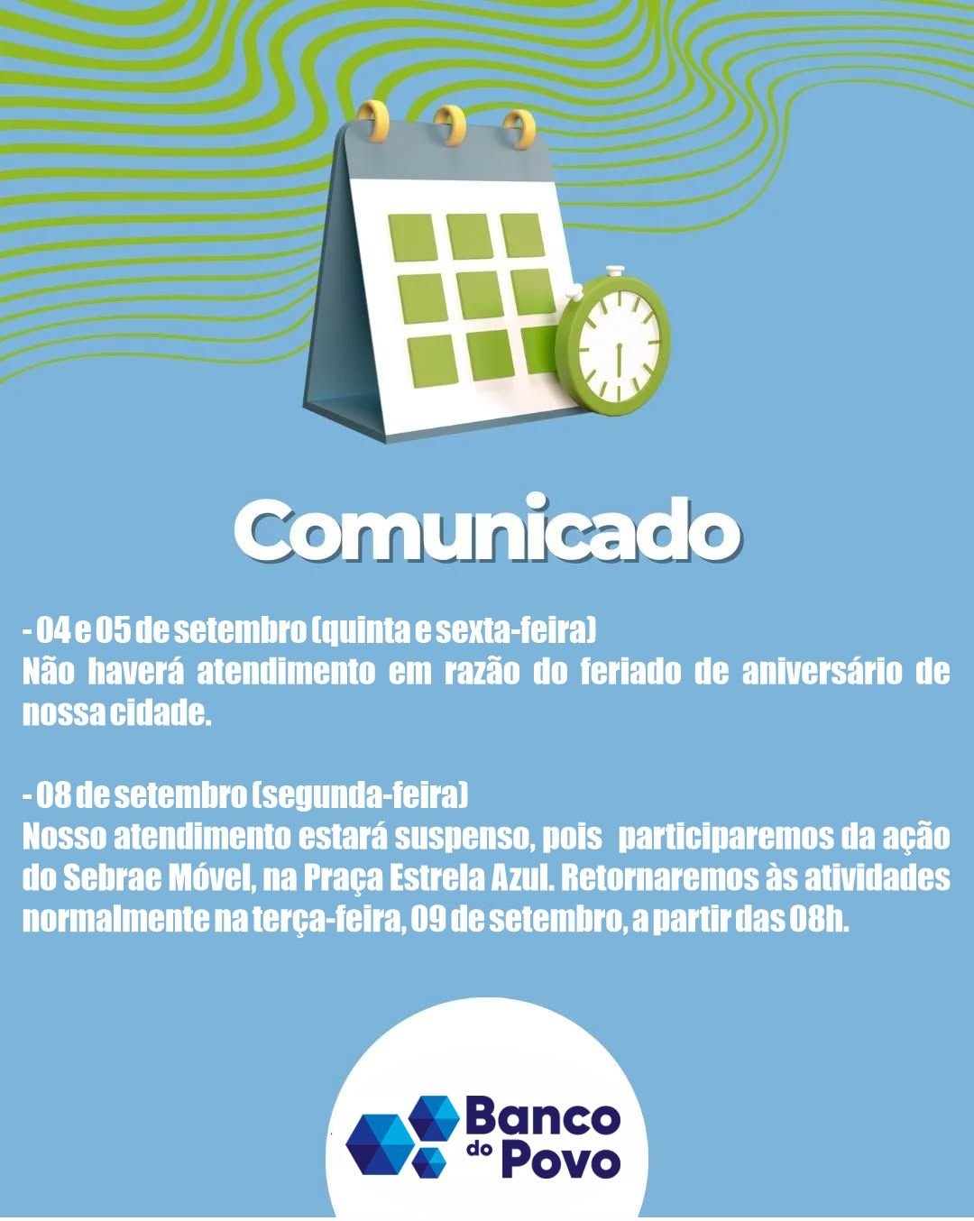 Retornaremos às atividades normalmente na terça-feira, 09 de setembro, a partir das 08h.