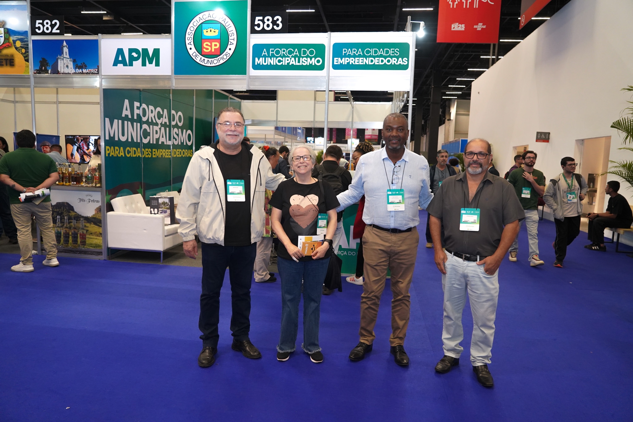Santa Rosa de Viterbo esteve representada ontem, quarta-feira, 15 de outubro, no primeiro dia da FE 2025 – Feira do Empreendedor, promovida pelo Sebrae, em São Paulo. A comitiva contou com a presença do prefeito Omar Nagib, do vice-prefeito Paulão Santos e da diretora de Planejamento e Finanças, dona Ana Maria Belavenuto. O grupo também teve a companhia de Antônio dos Santos e do gerente de relacionamento do Sebrae-SP, Alexandre Robazza, que acompanhou o prefeito em um tour pela feira, conhecendo de perto as novidades e oportunidades apresentadas no evento.