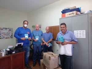 Na foto, estão o agente da Defesa Civil, Leandro do Valle Silvestre; o vereador Marinho Titarelli, o diretor de Engenharia, Obras, Agricultura e Serviços e coordenador da Defesa Civil, Marcelo Benjamim, e o chefe de Programas Agrícolas da Casa da Lavoura, Fernando José Mesquita.