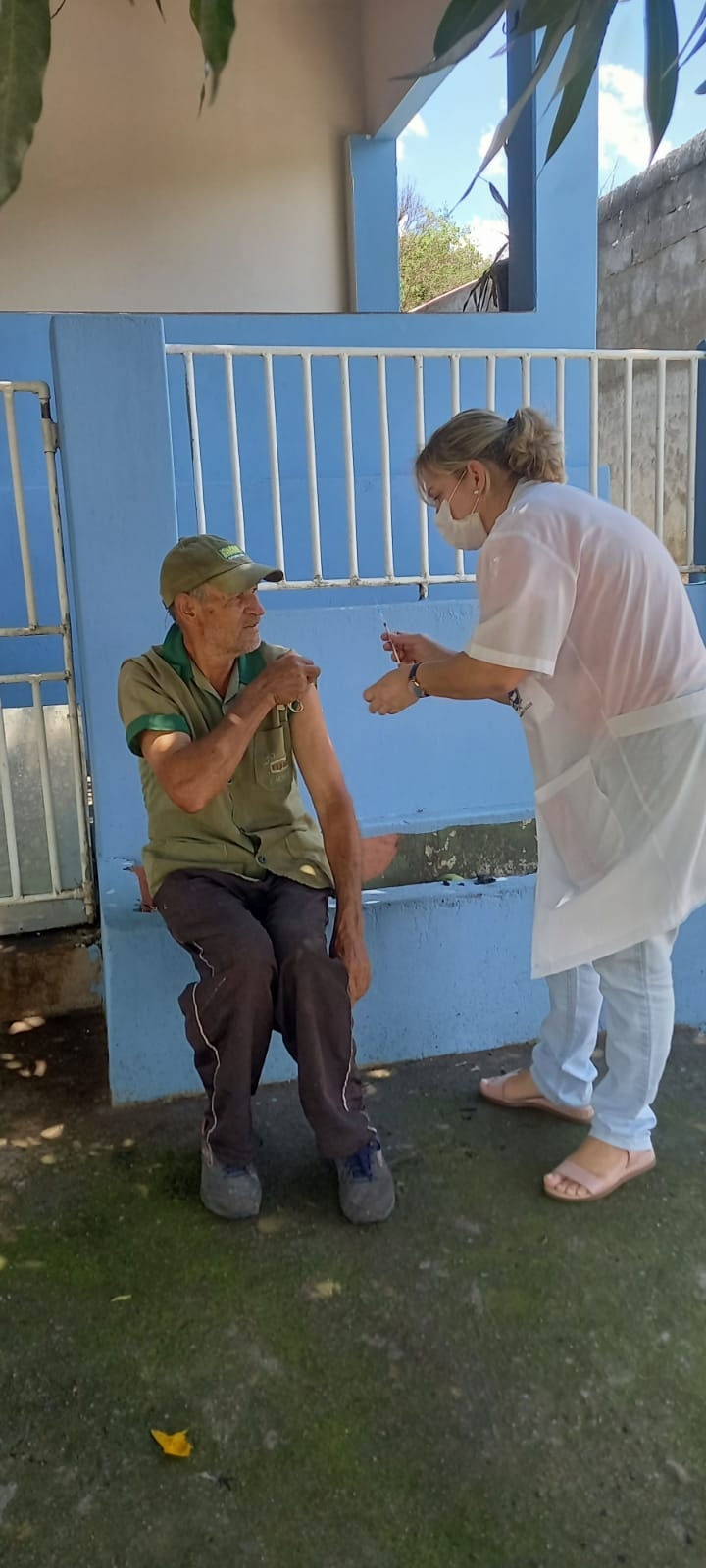 No total, 78 doses foram aplicadas em domicílio. Além disso, o reforço também ocorreu no Salão da Capela, para pessoas que estavam com atraso no cronograma. No local, 105 munícipes receberam a vacina.