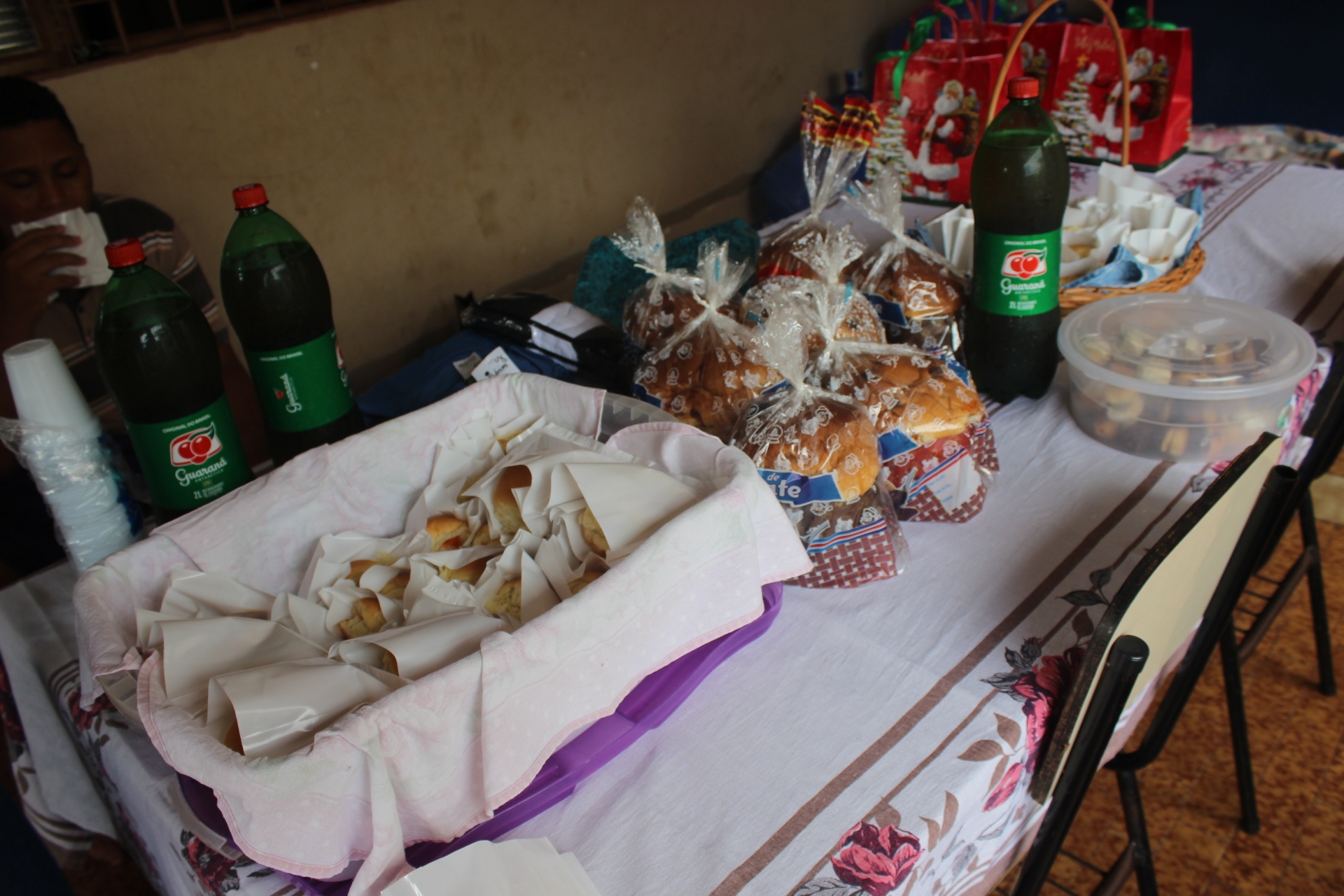 Vestidas a caráter, a presidente do fundo, Roberta de Cássia Amici Chiaperini, e a secretária da entidade, Eliana Aparecida de Araújo dos Santos, organizaram a festa, com direito a doces, panetone, salgados e refrigerante.