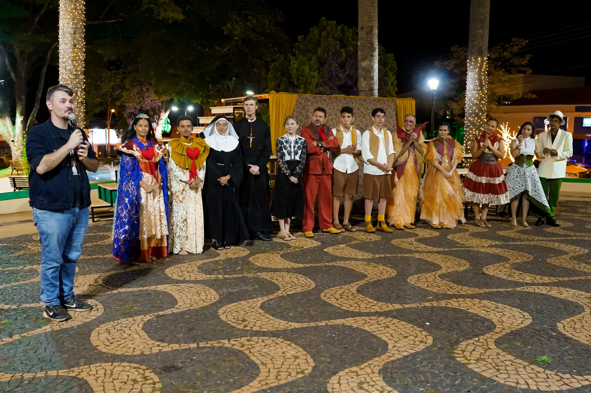 A abertura ficou por conta da Banda Professor Renato Massaro, às 19h, com um concerto natalino e um repertório preparado especialmente para a ocasião. Em seguida, às 20h, o público acompanhou o espetáculo “Auto da Compadecida”, apresentado pelo Projeto Novos Artistas – Especial Ariano Suassuna, que levou ao palco humor e a força da cultura nordestina, em uma interpretação envolvente de nossos talentosos jovens santa-rosenses.