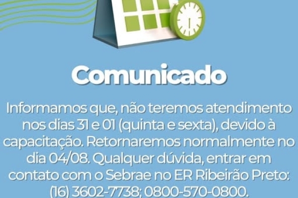 Comunicado: Não haverá atendimento nesta quinta e sexta-feira