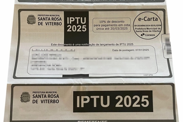 Guia do IPTU 2026 começam a ser entregues a partir de segunda-feira