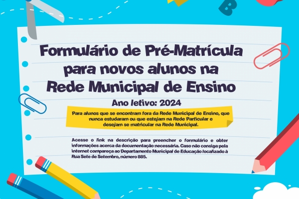 Formulário de Pré-Matrícula para novos alunos na Rede Municipal de Ensino