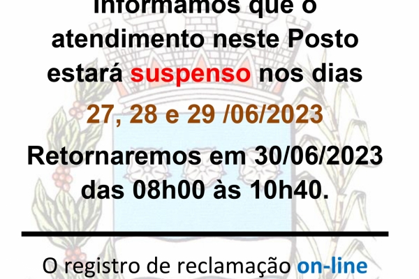 Atendimento do PROCON estará suspenso nos dias 27, 28 e 29 de junho