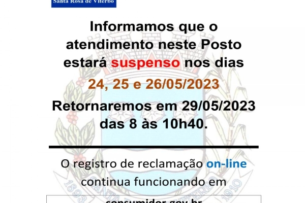 Atendimento do PROCON estará suspenso de quarta até sexta-feira