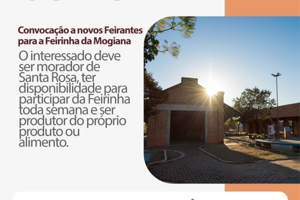 Convocação a novos Feirantes para a Feirinha da Mogiana